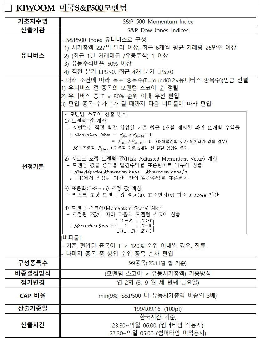 KIWOOM 미국S&P500모멘텀,