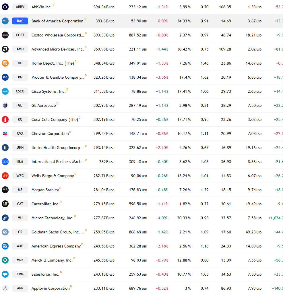 미국증시 시가총액 순위입니다.