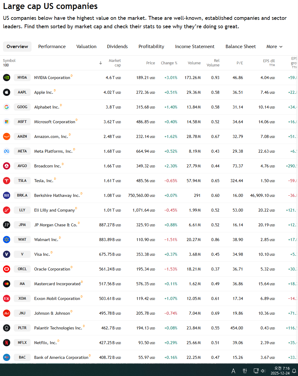| 2025년 12월 22일 금융시장 지표와 미국증시 시가총액 순위 (0) | 2025.12.23 |