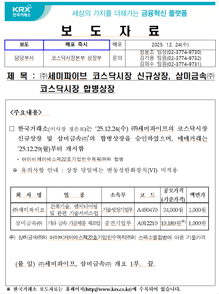 한국거래소 등록일 2025-12-24