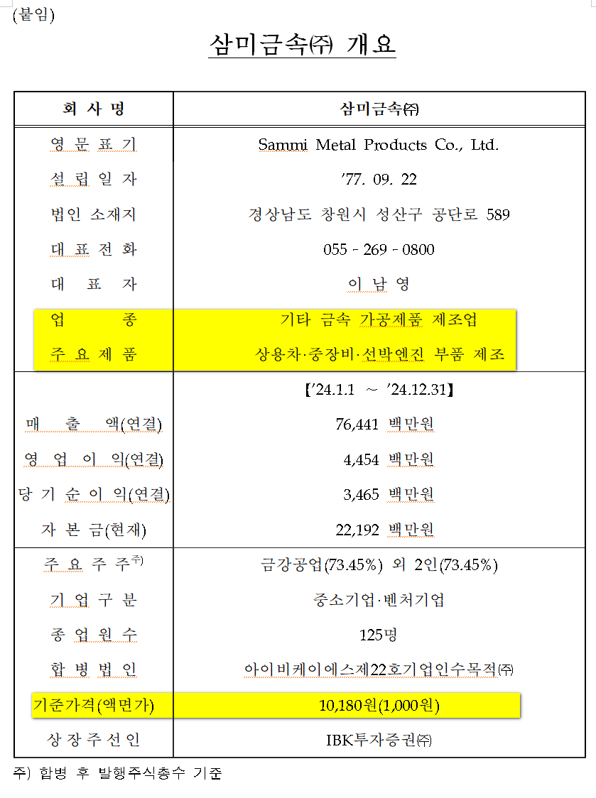 삼미금속(IBKS제22호스팩합병),