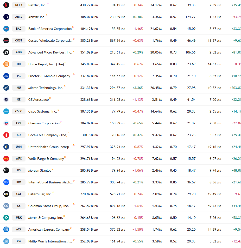 미국증시 시가총액 순위입니다.