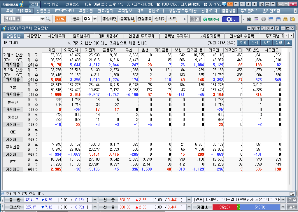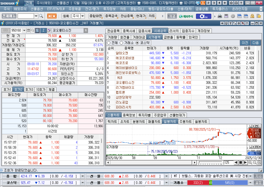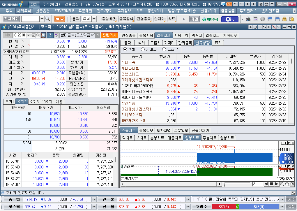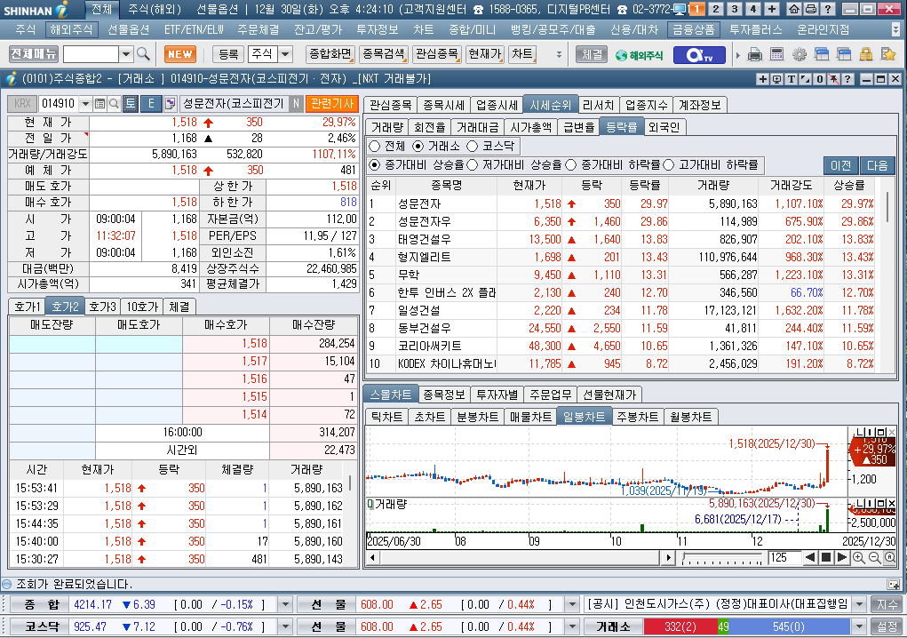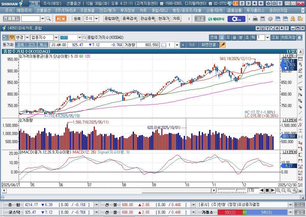 2025년 12월 30일 화요일 증시현황