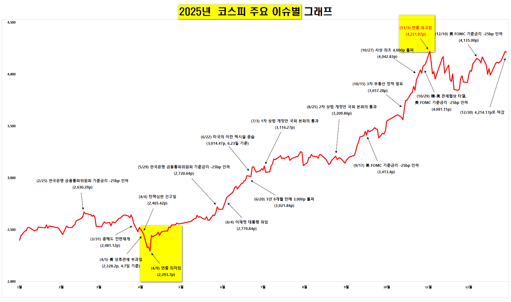 2025년 코스피(거래소) 주요 이슈별 그래프와