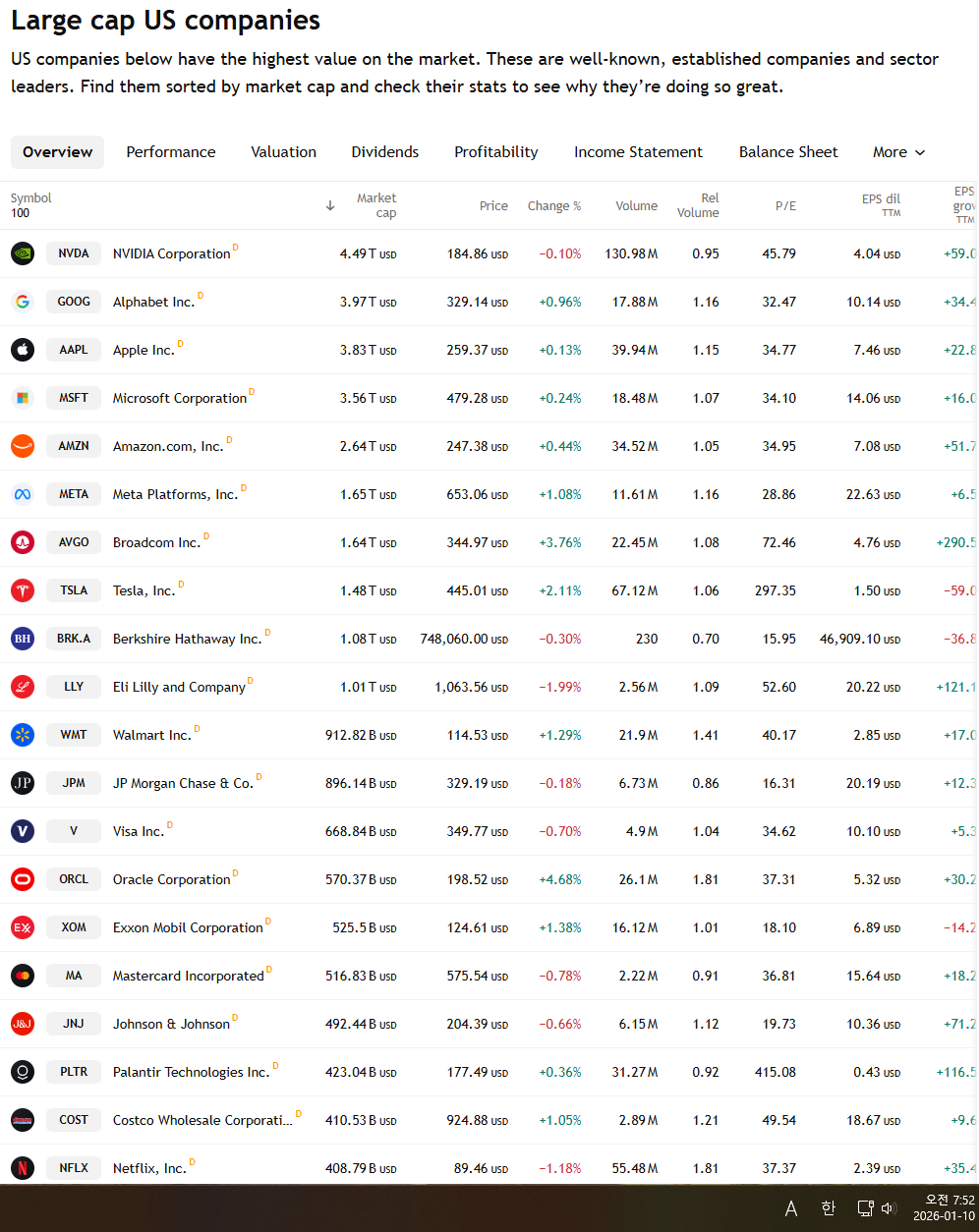 | 2026년 1월 8일 금융시장 지표와 미국증시 시가총액 순위 (0) | 2026.01.09 |