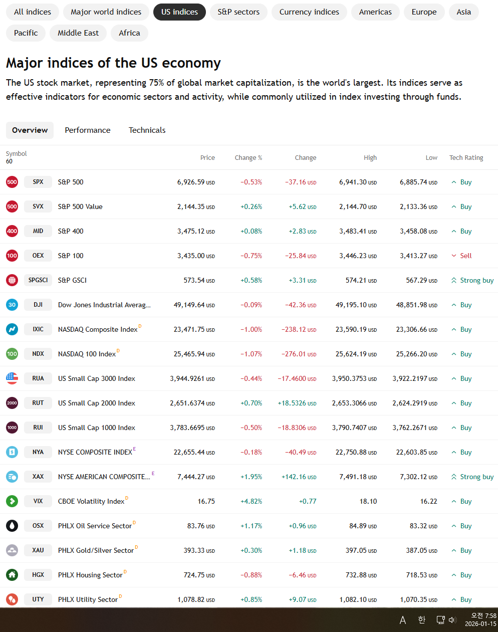 | 2026년 1월 13일 금융시장 지표와 미국증시 시가총액 순위 (0) | 2026.01.14 |
