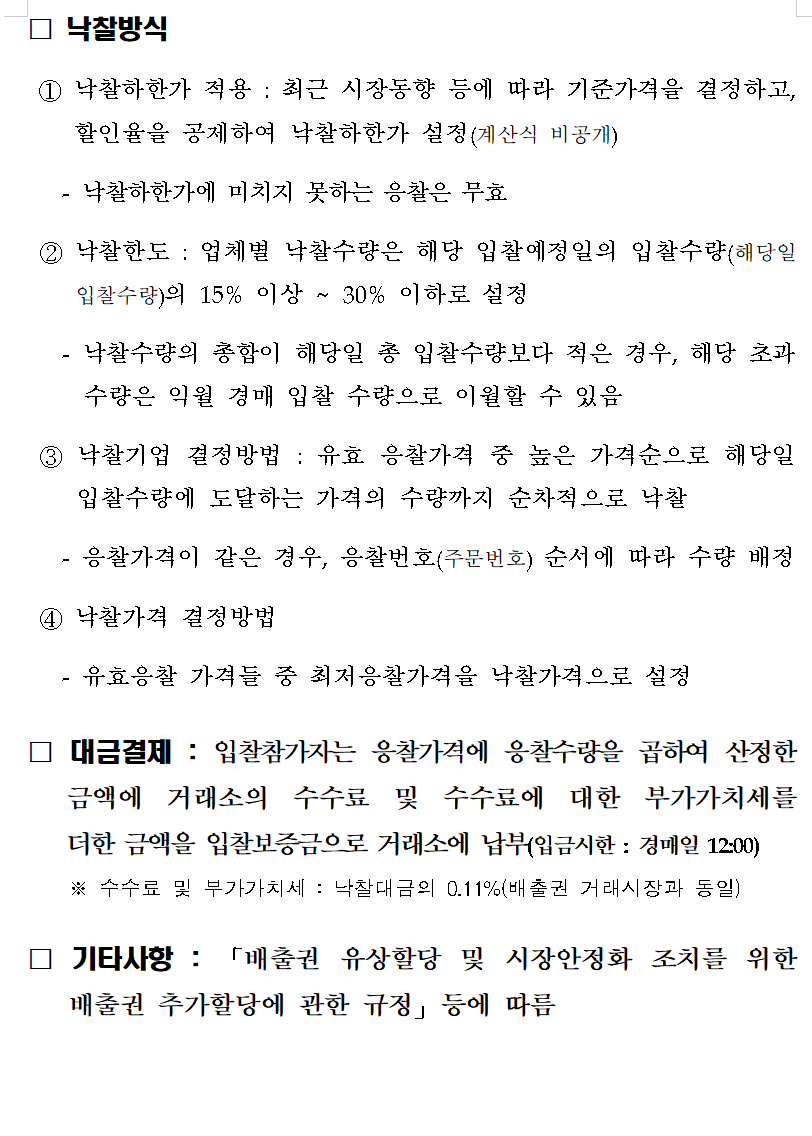 □ 입찰방식 : 한국거래소 배출권 거래시장