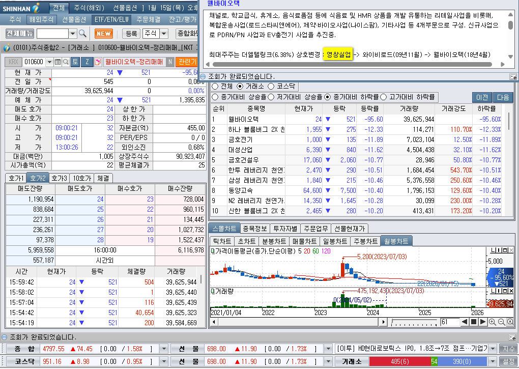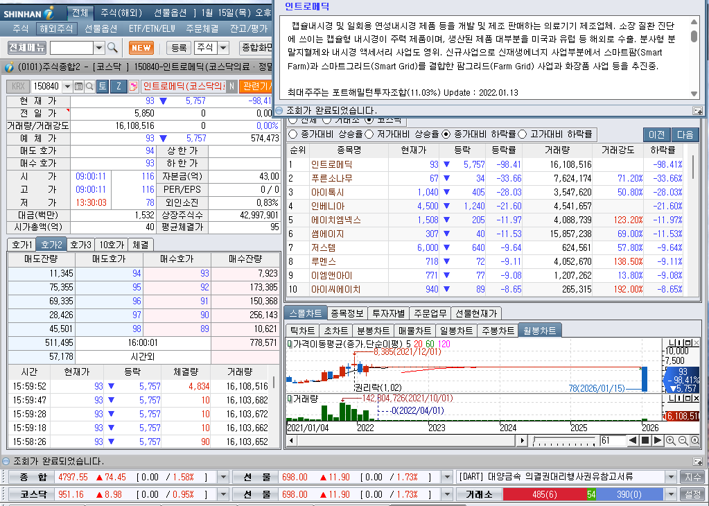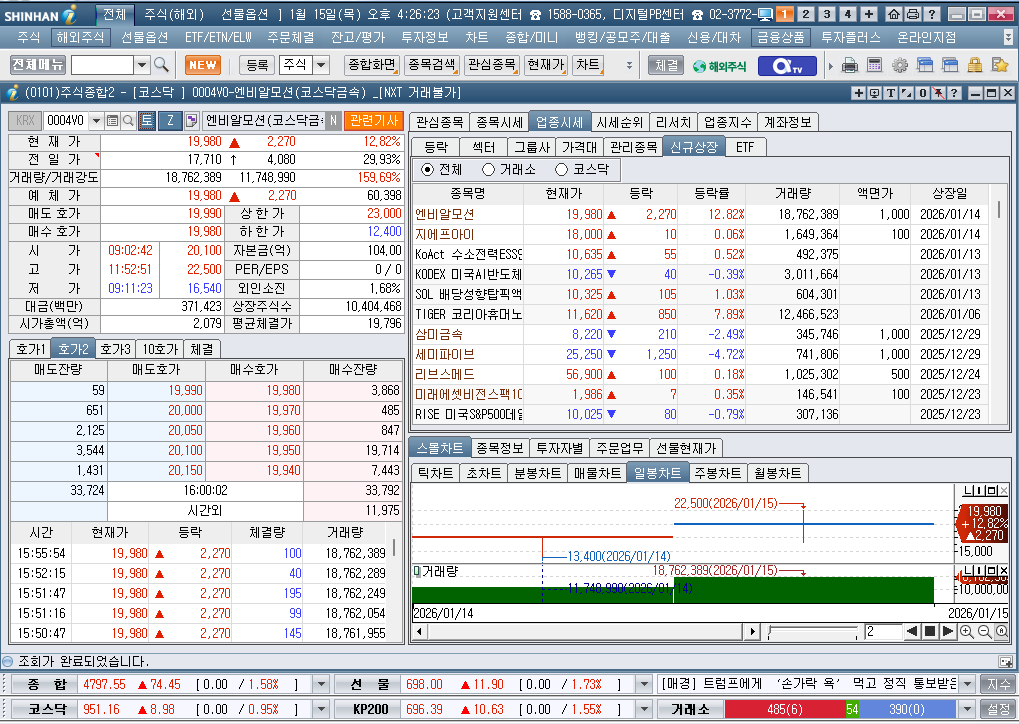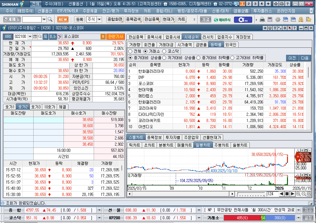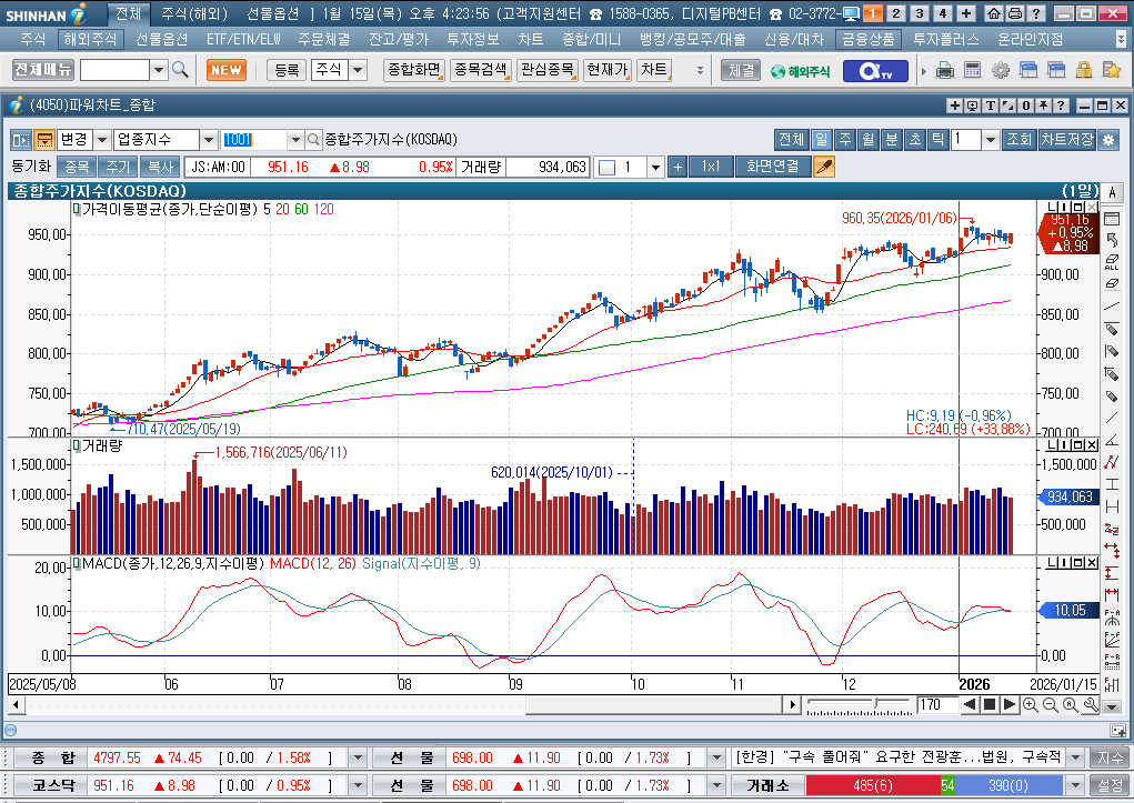 2026년 1월 15일 목요일 증시현황
