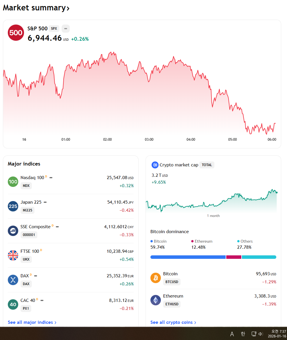 | 2026년 1월 16일 금요일 증시현황 (0) | 2026.01.16 |