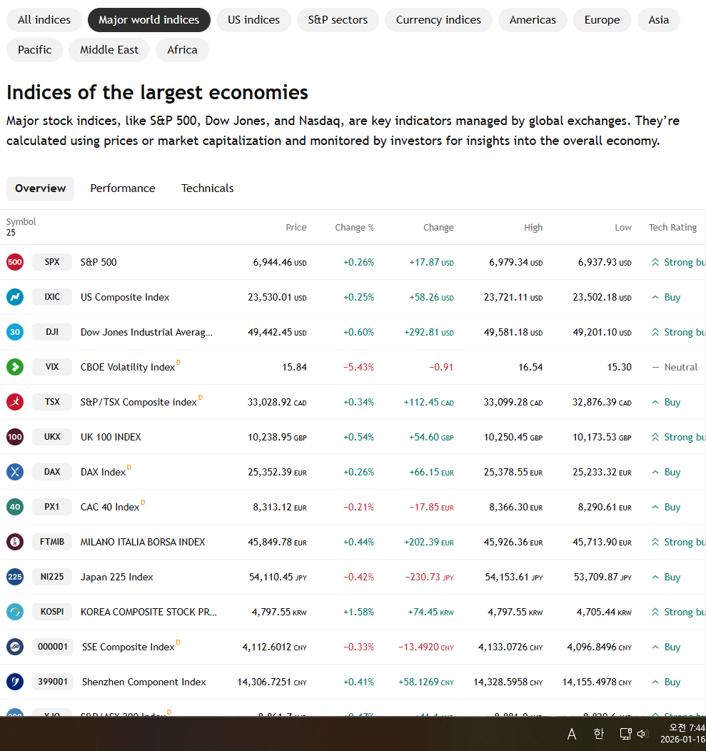 | 2026년 1월 16일 금융시장 지표와 미국증시 시가총액 순위 (0) | 2026.01.17 |