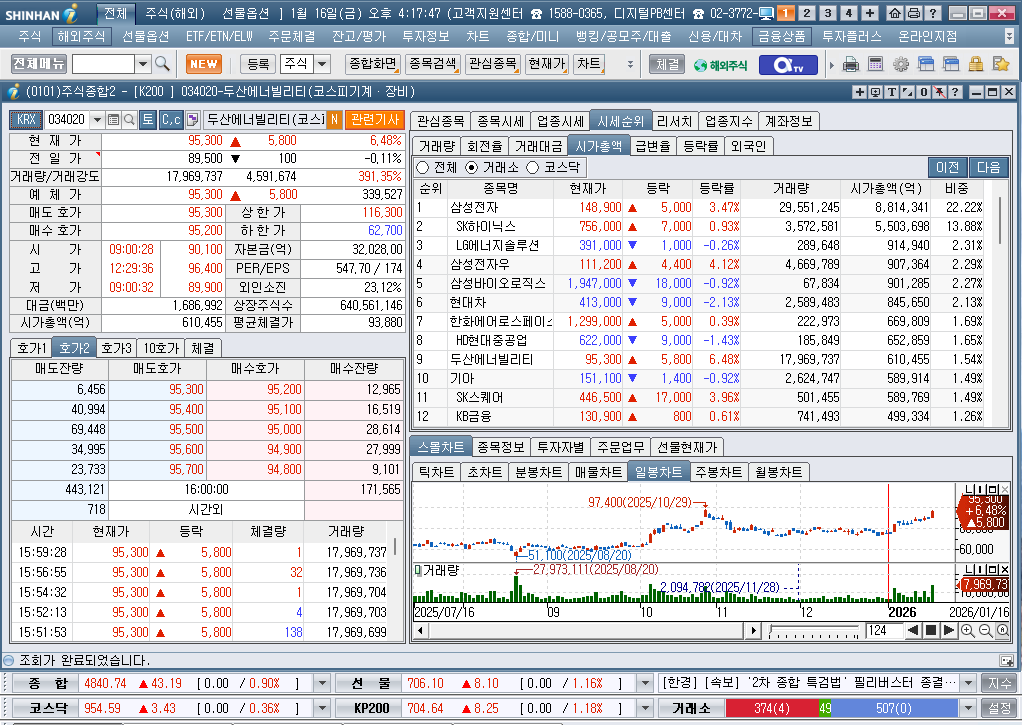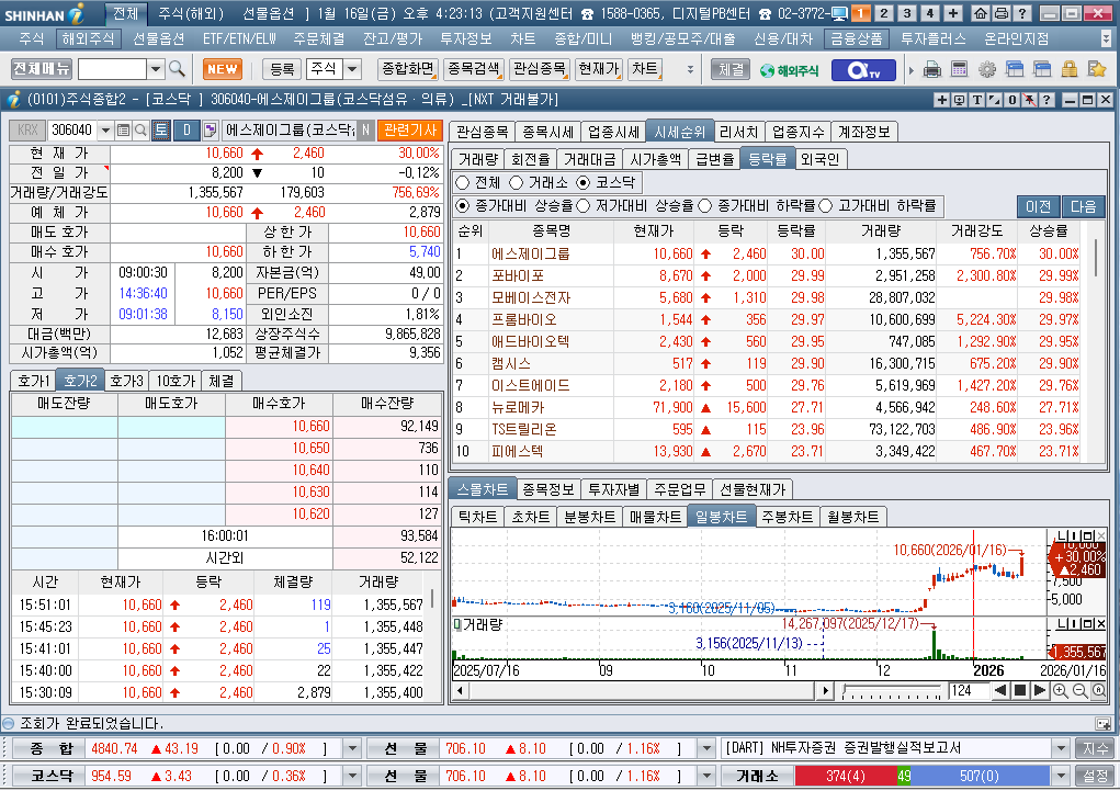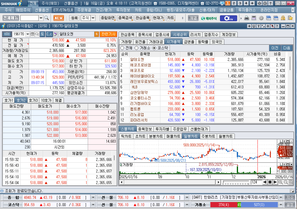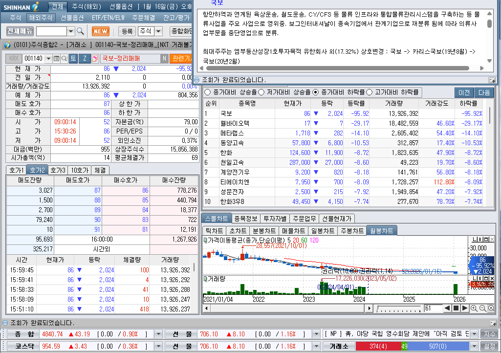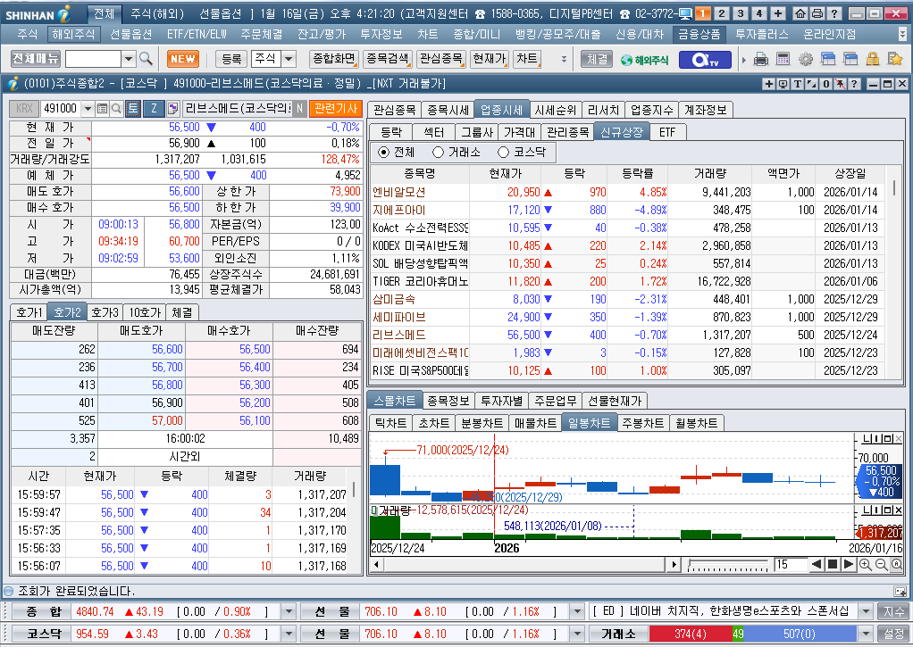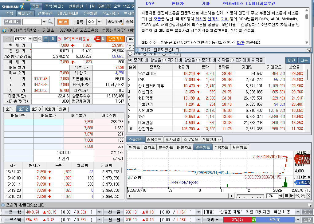 2026년 1월 16일 금요일 증시현황