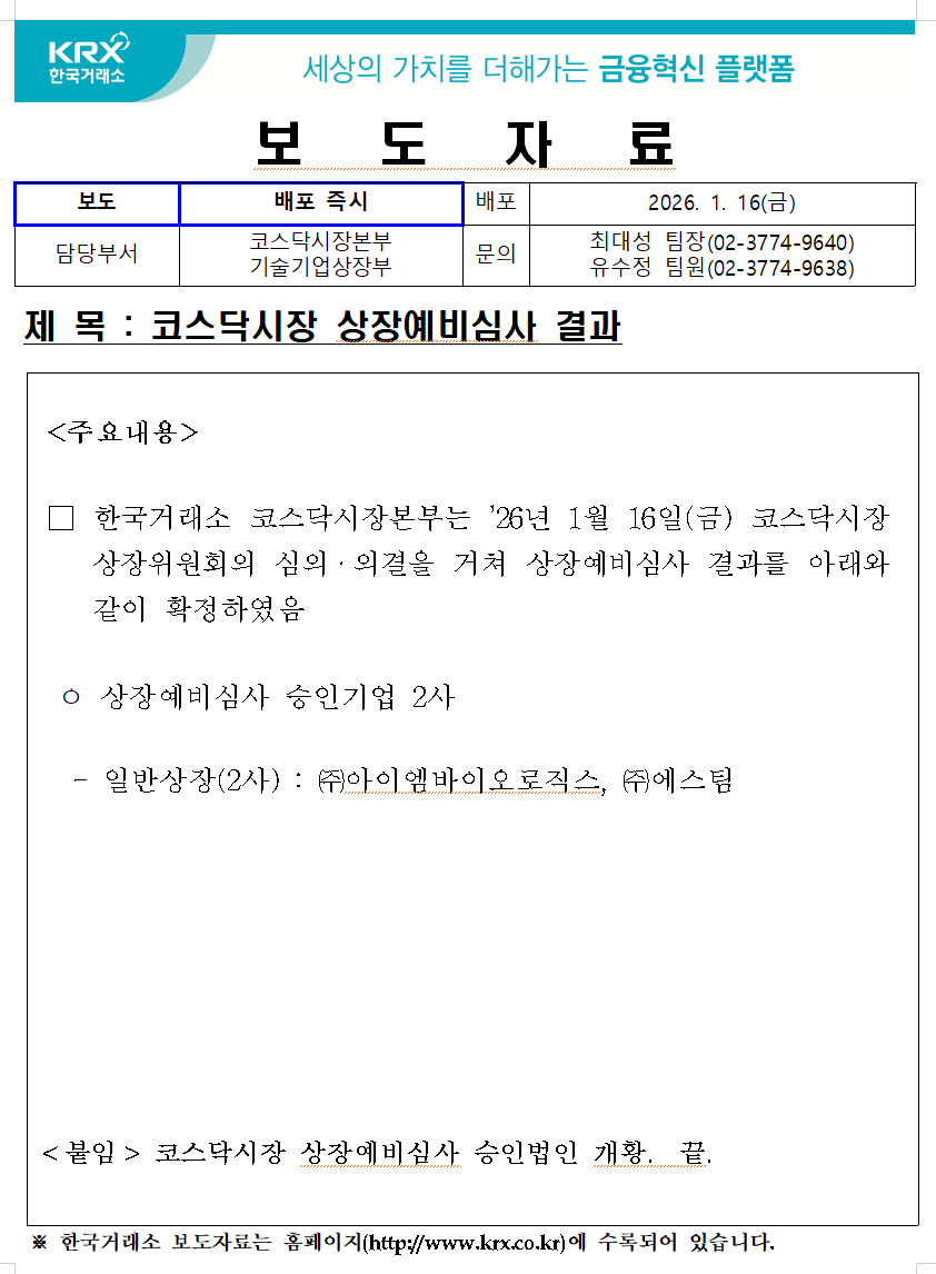한국거래소 등록일 2026-01-16