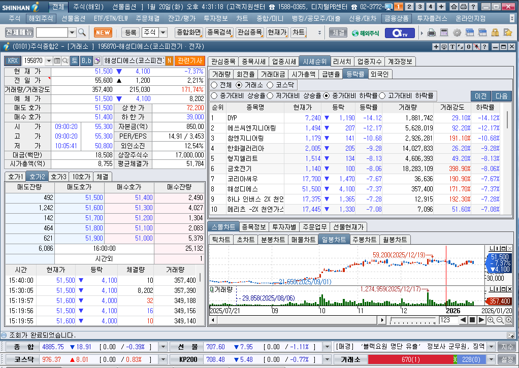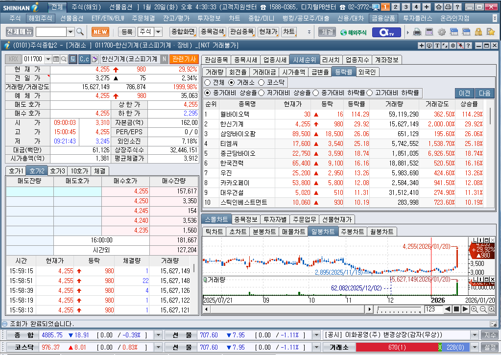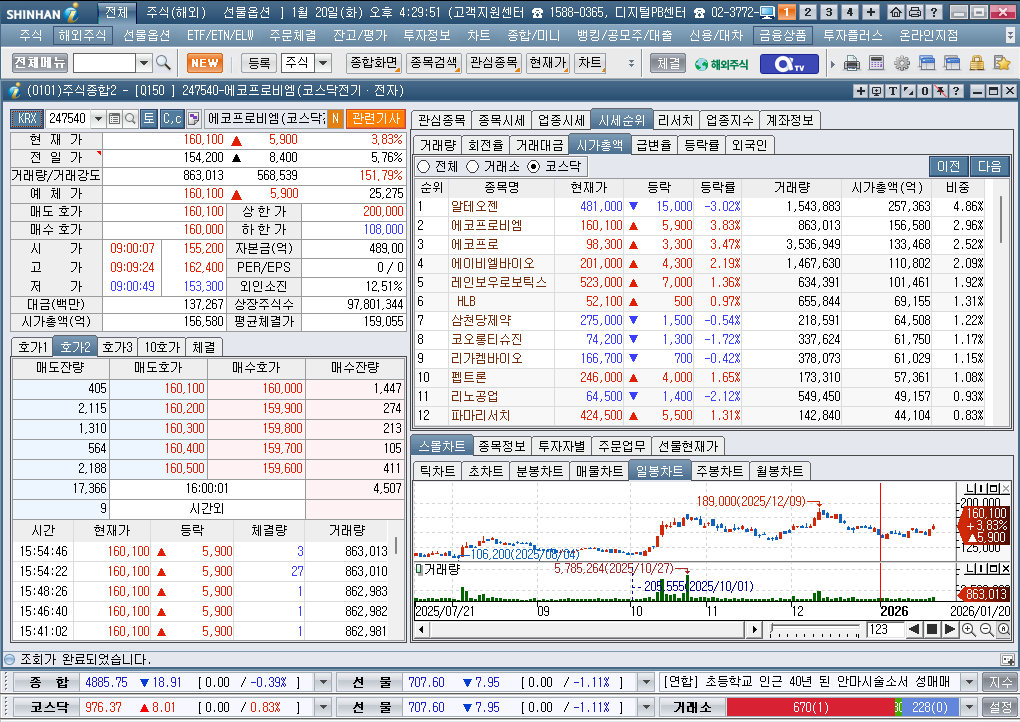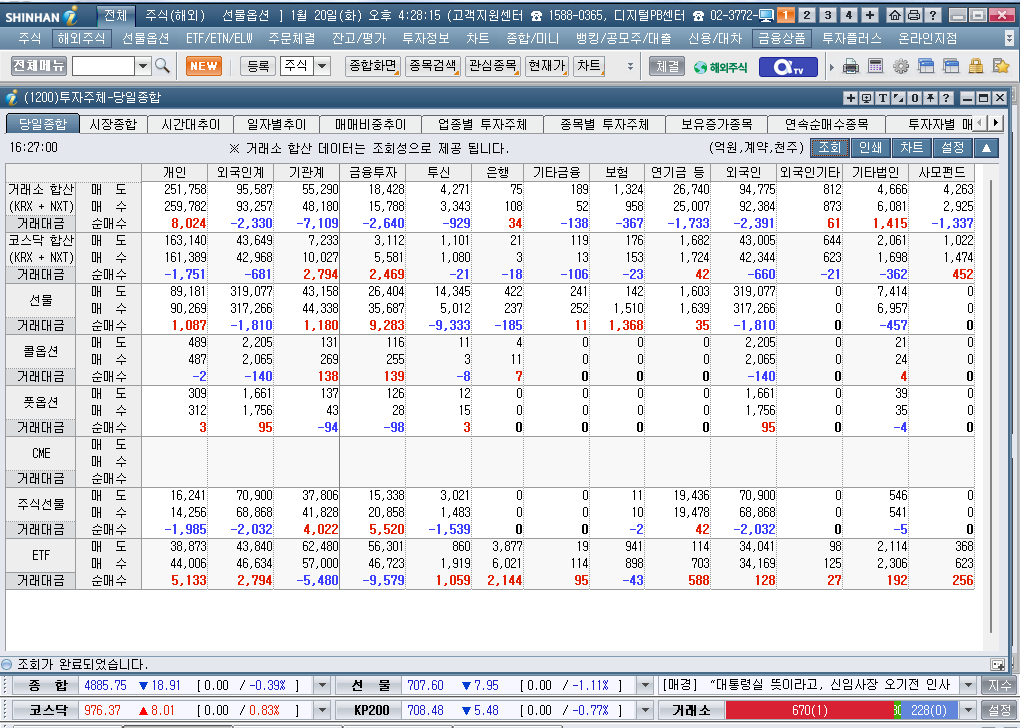 2026년 1월 20일 화요일 증시현황