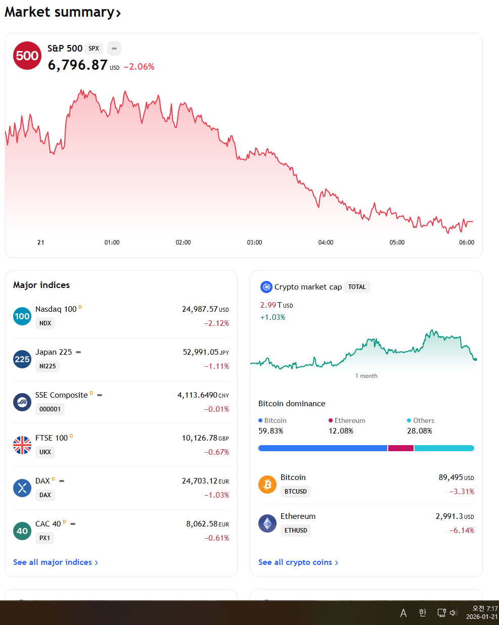| 2026년 1월 21일 수요일 증시현황 (0) | 2026.01.21 |
