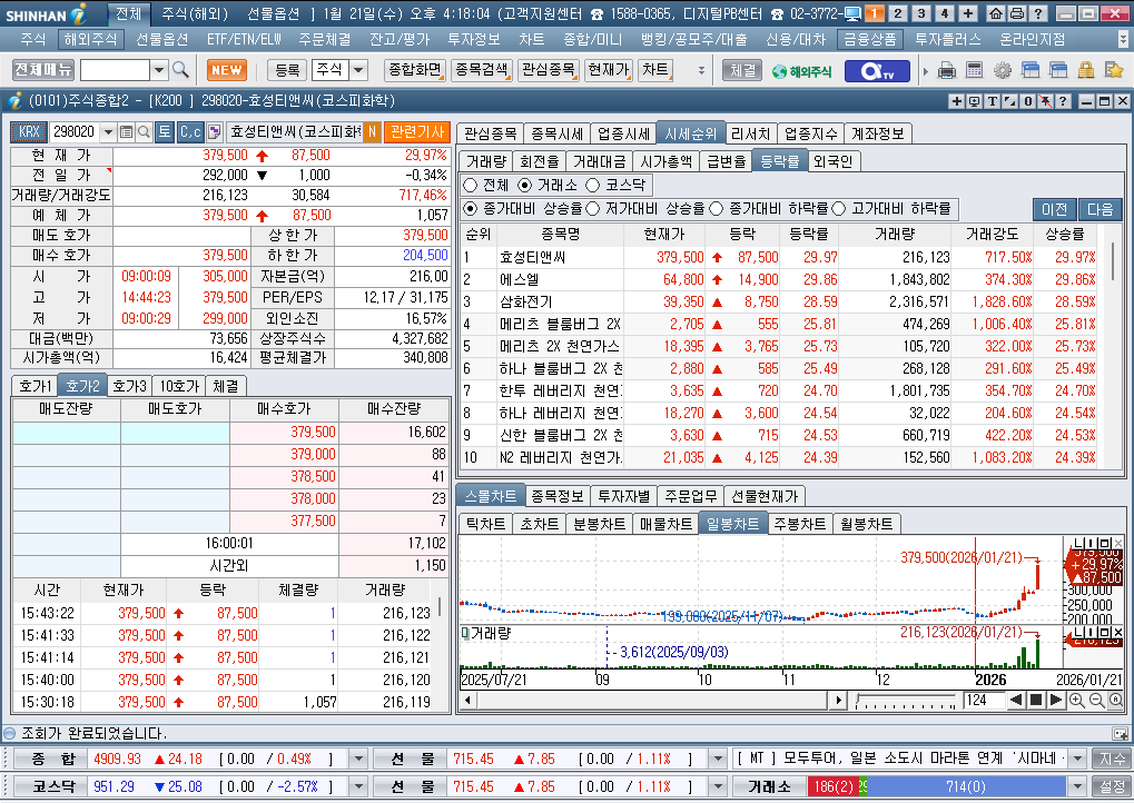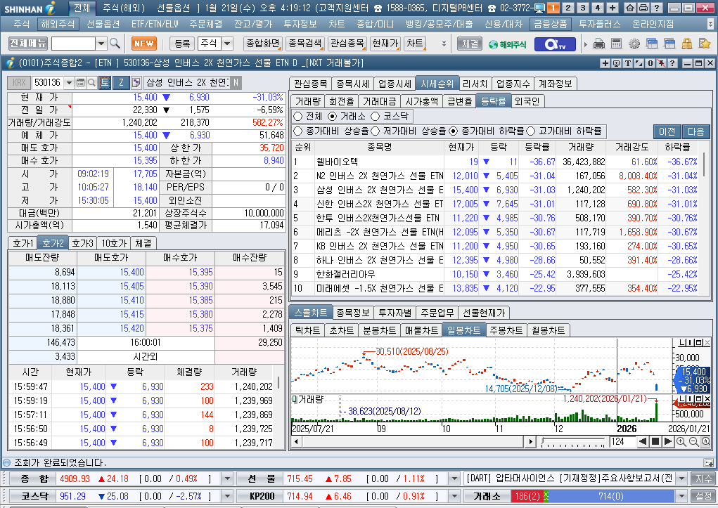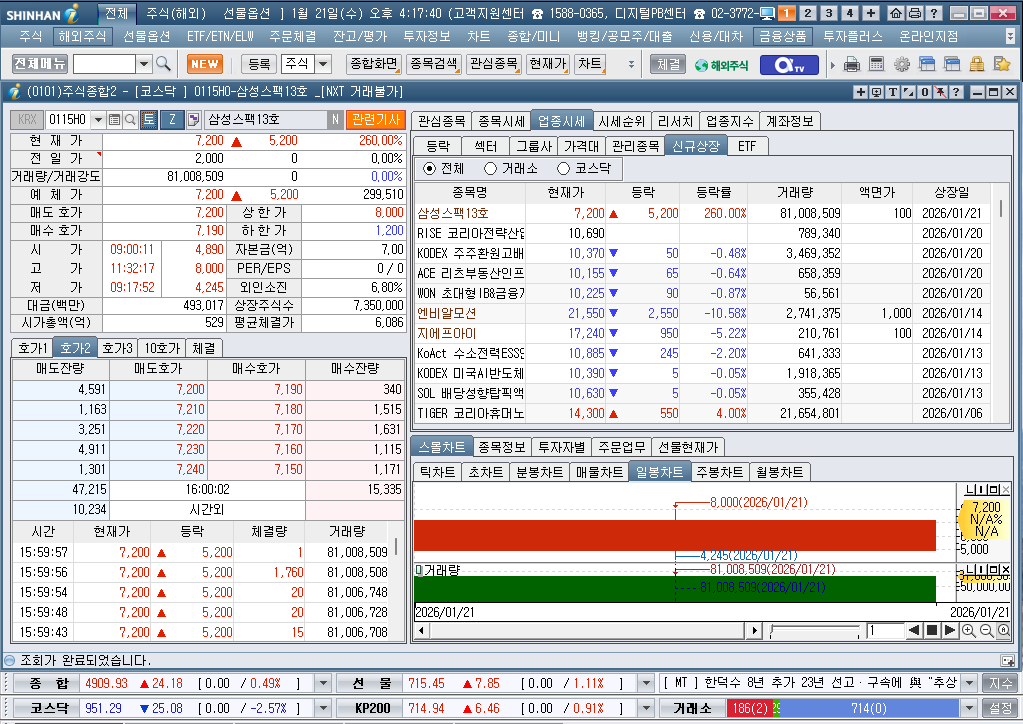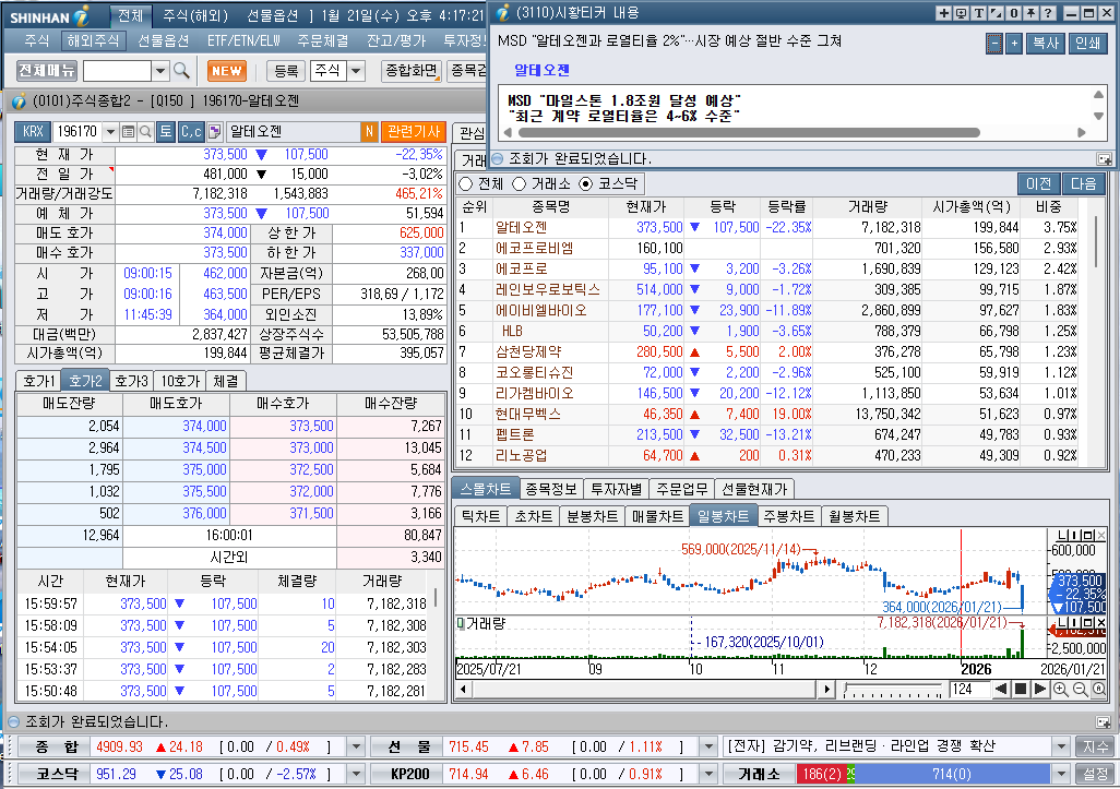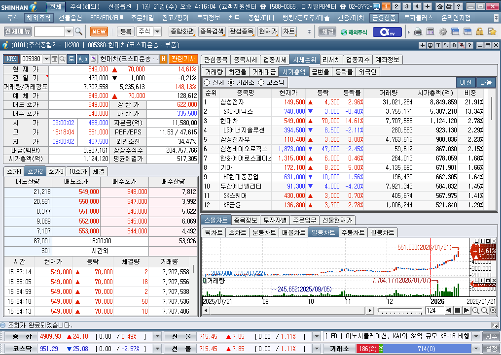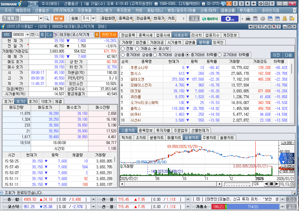 2026년 1월 21일 수요일 증시현황