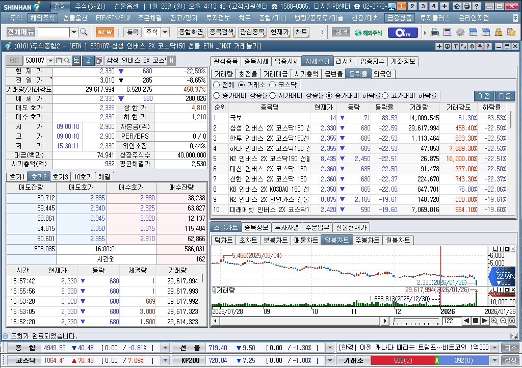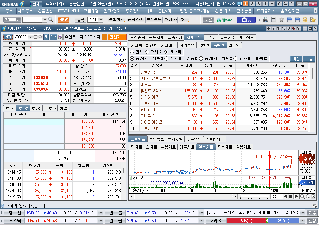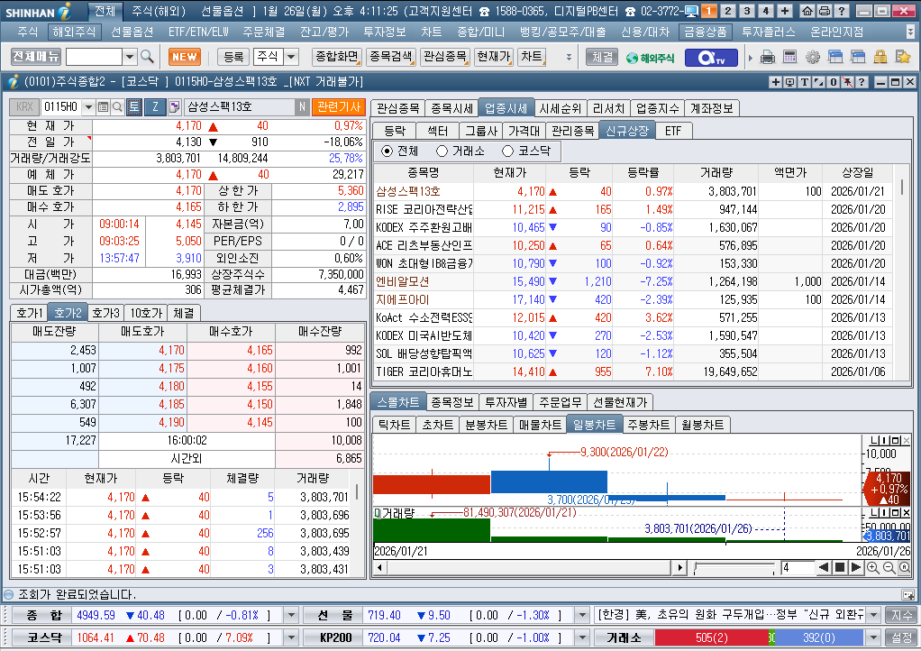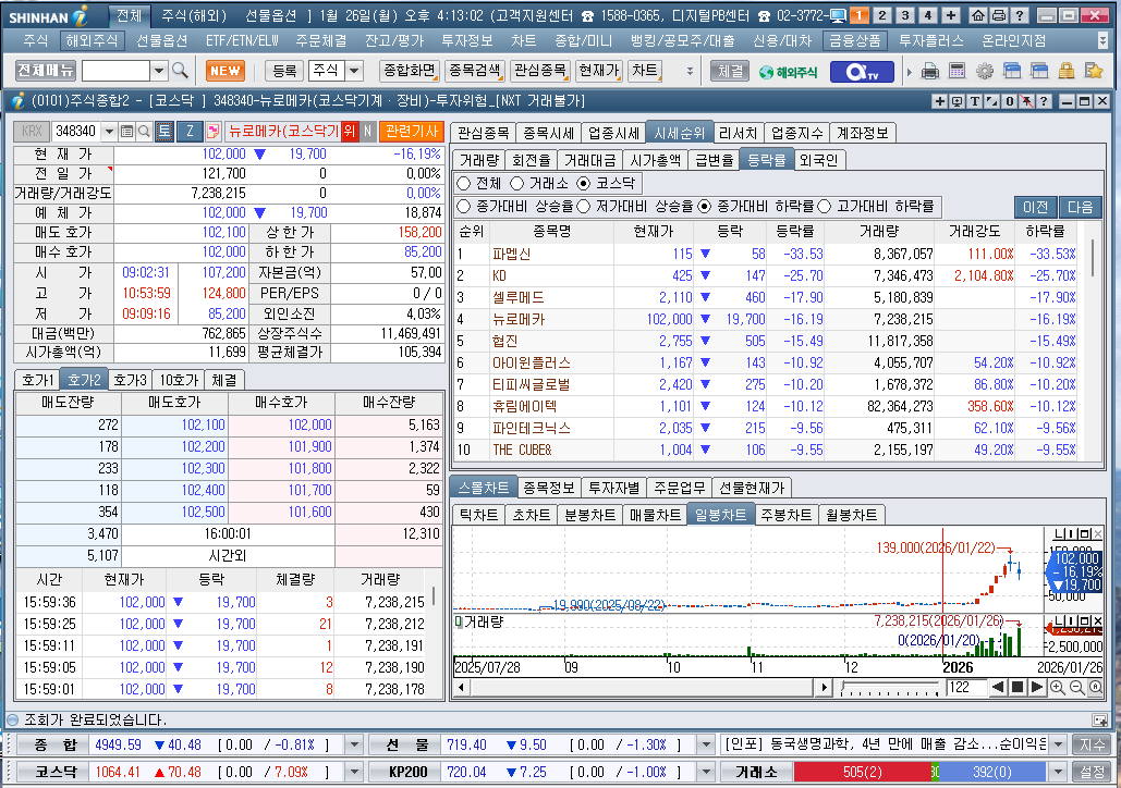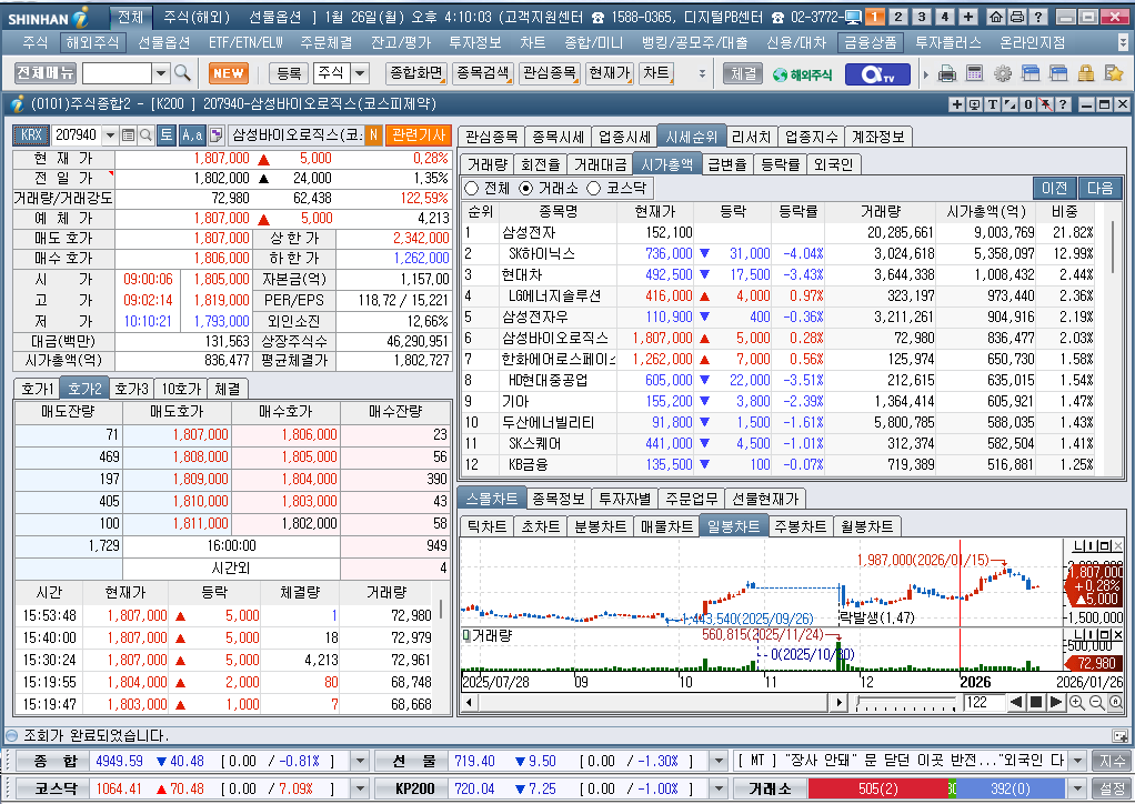 2026년 1월 26일 월요일 증시현황