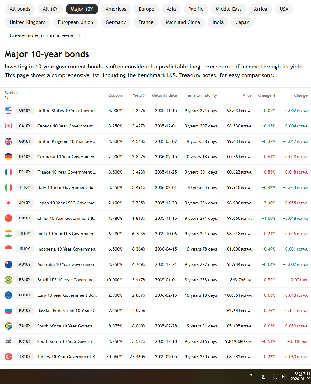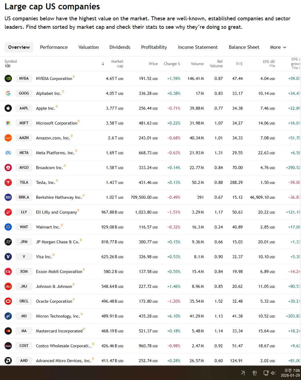 | 2026년 1월 27일 금융시장 지표와 미국증시 시가총액 순위 (0) | 2026.01.28 |