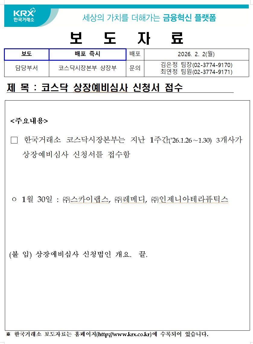 한국거래소 등록일 2026-02-02