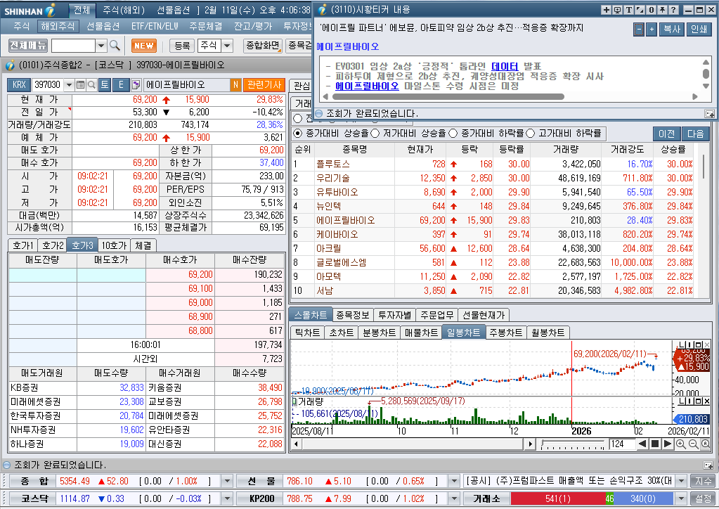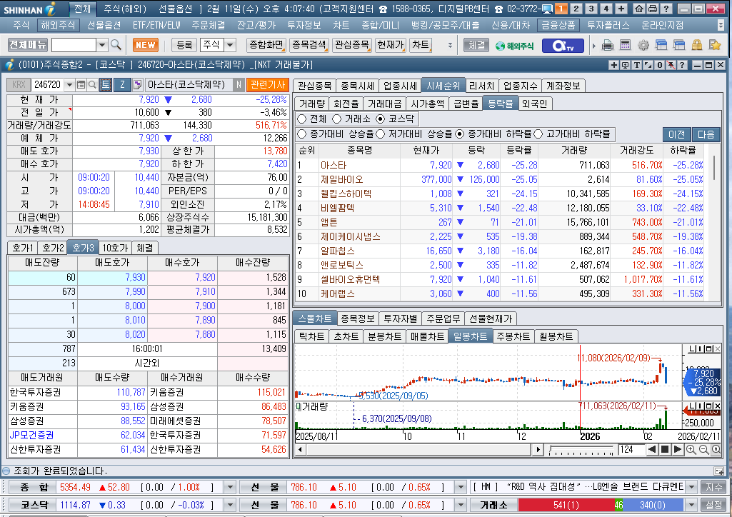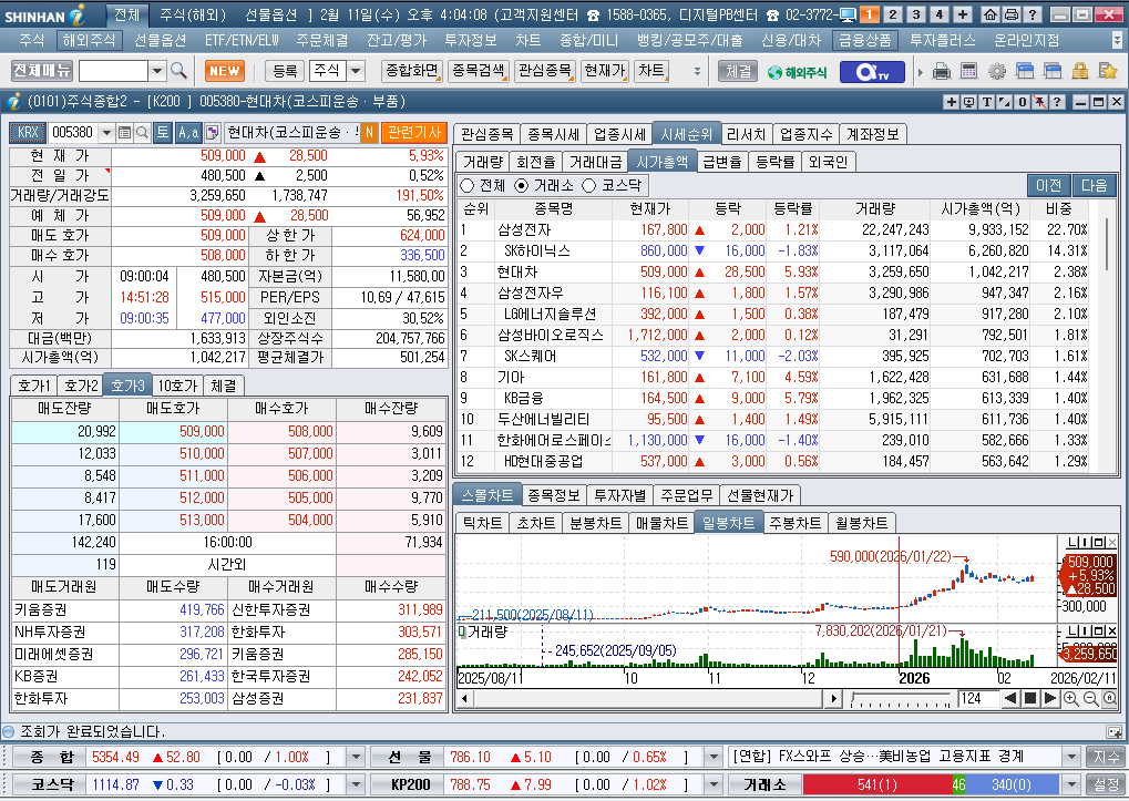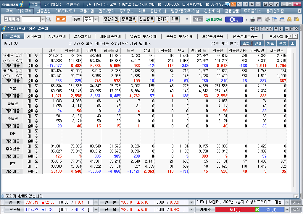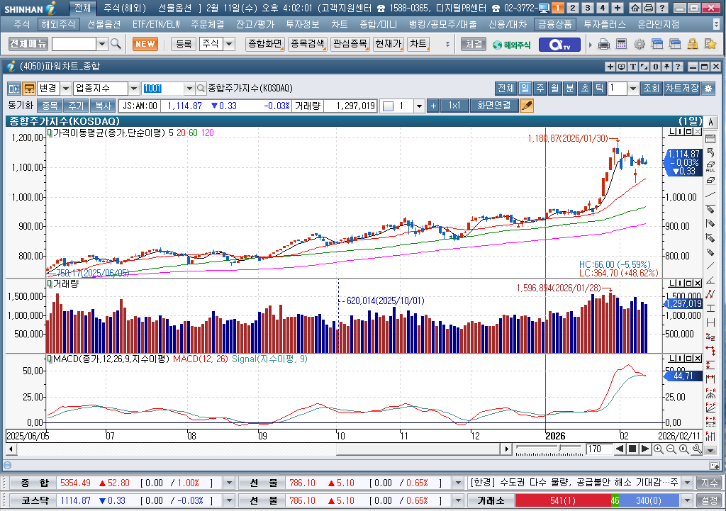 2026년 2월 11일 수요일 증시현황