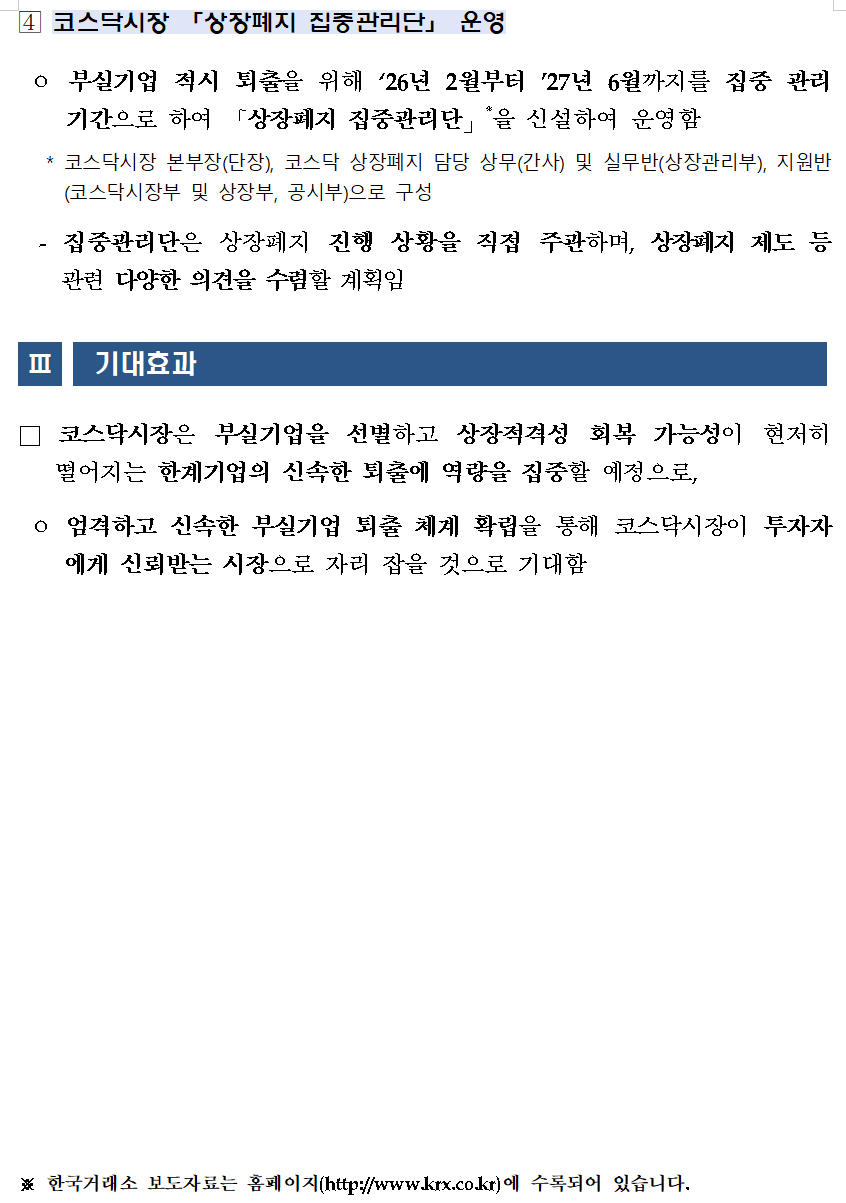 4. 코스닥시장 「상장폐지 집중관리단」 운영