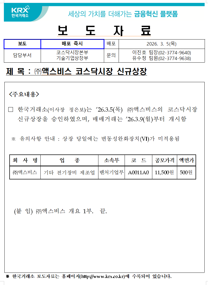 한국거래소 등록일 2026-03-05