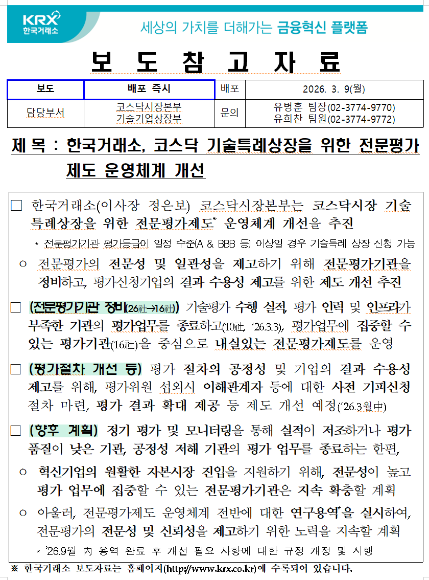 □ 한국거래소(이사장 정은보) 코스닥시장본부는