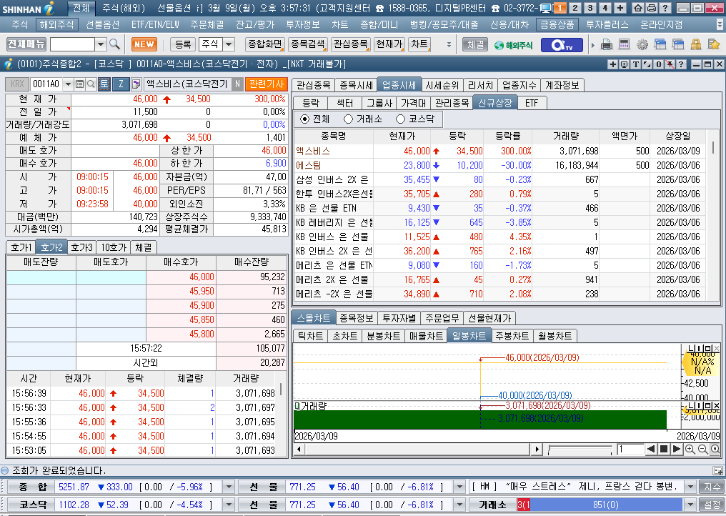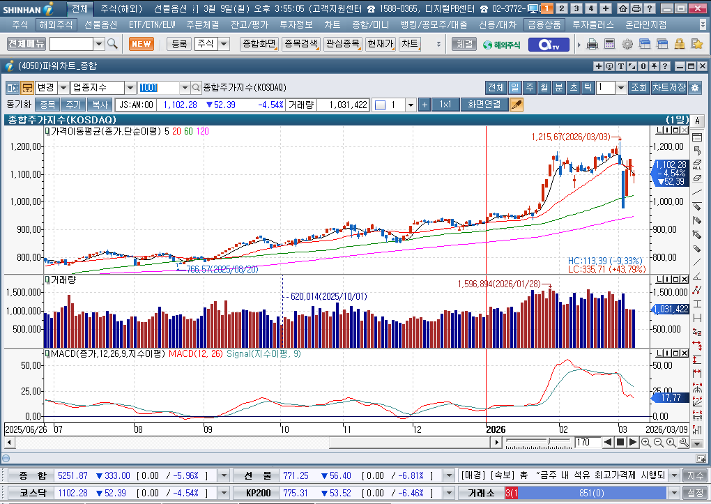 2026년 3월 9일 월요일 증시현황