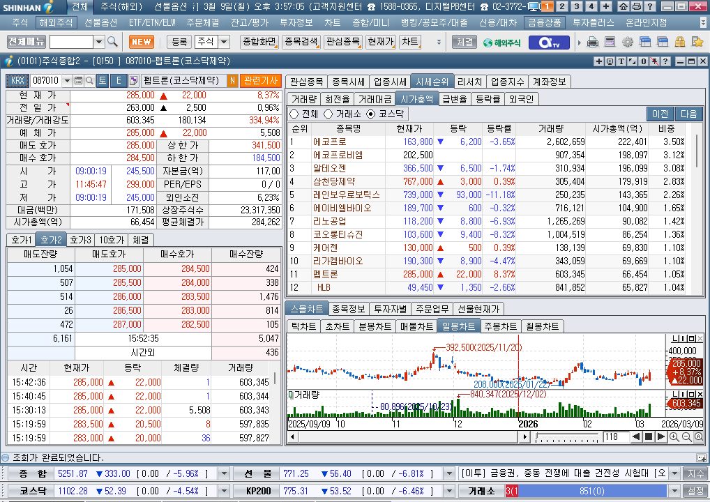 | 2026년 3월 9일 월요일 코스닥시장 매도사이드카(프로그램매매 매도호가 효력정지) 발동 (0) | 2026.03.09 |