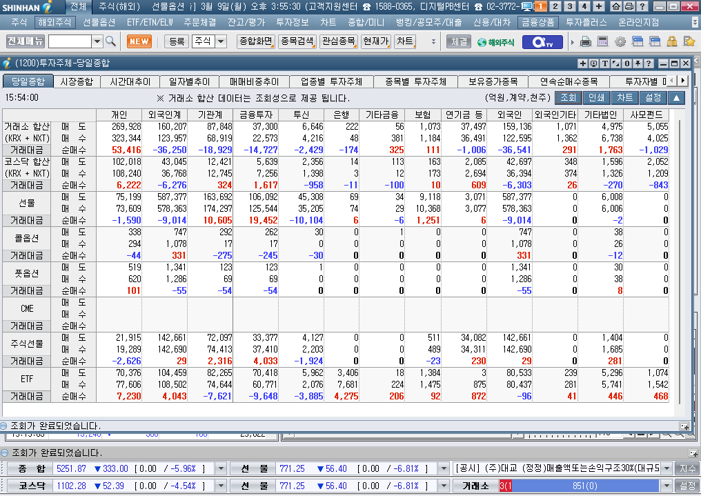 | 2026년 3월 9일 월요일 거래소(코스피) 매도사이드카(프로그램매매 매도호가 효력정지) 발동 및 거래소(코스피)시장 1단계 Circuit Breakers(일시중단) 발동 (0) | 2026.03.09 |