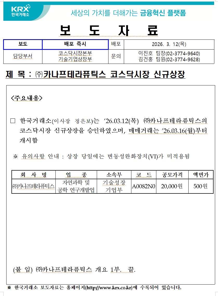 코스닥시장 신규상장(2026년 3월 16일)