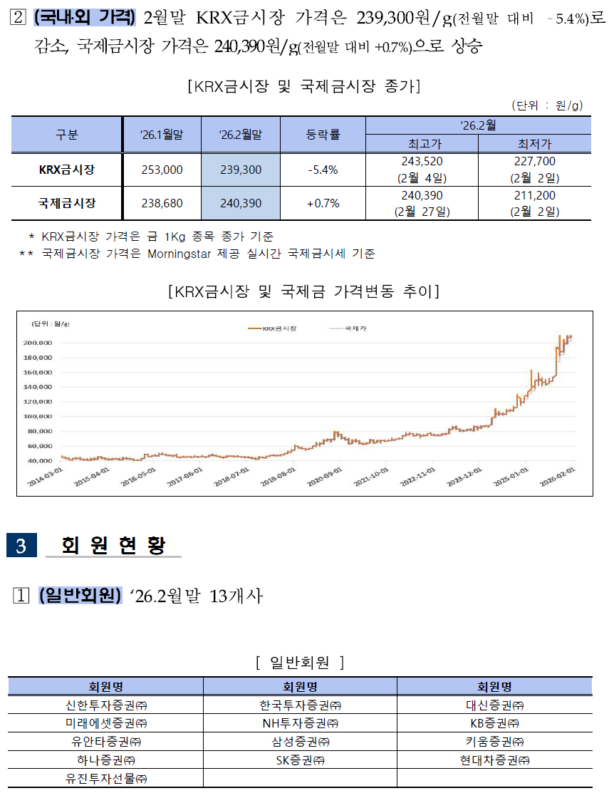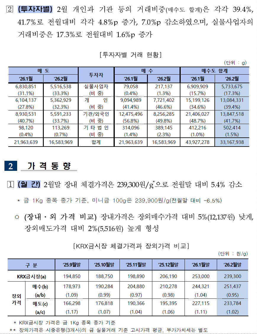 미니금 100g은 239,900원/g(전월말 대비 -6.5%)