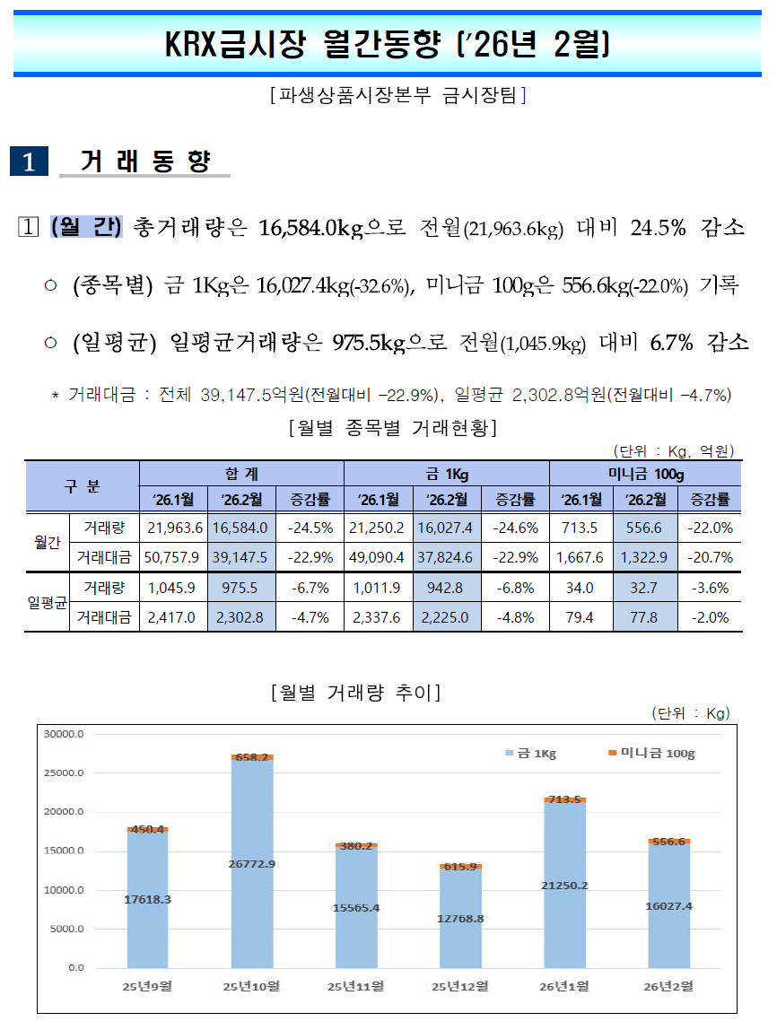 ㅇ (종목별) 금 1Kg은 16,027.4kg(-32.6%),
