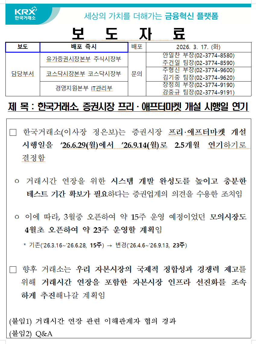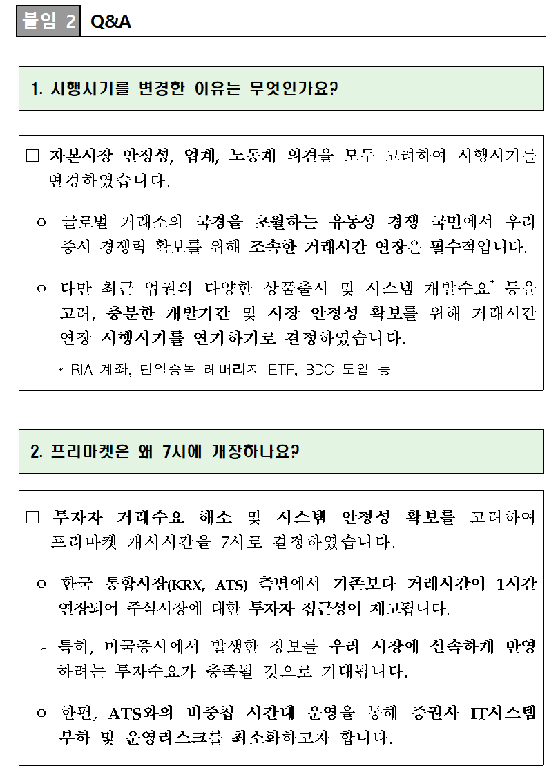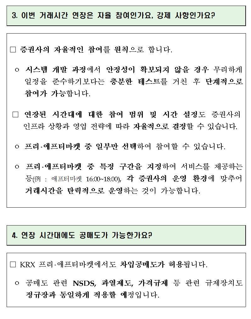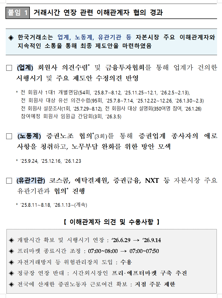 경쟁력 제고를 위해 거래시간 연장을 포함한