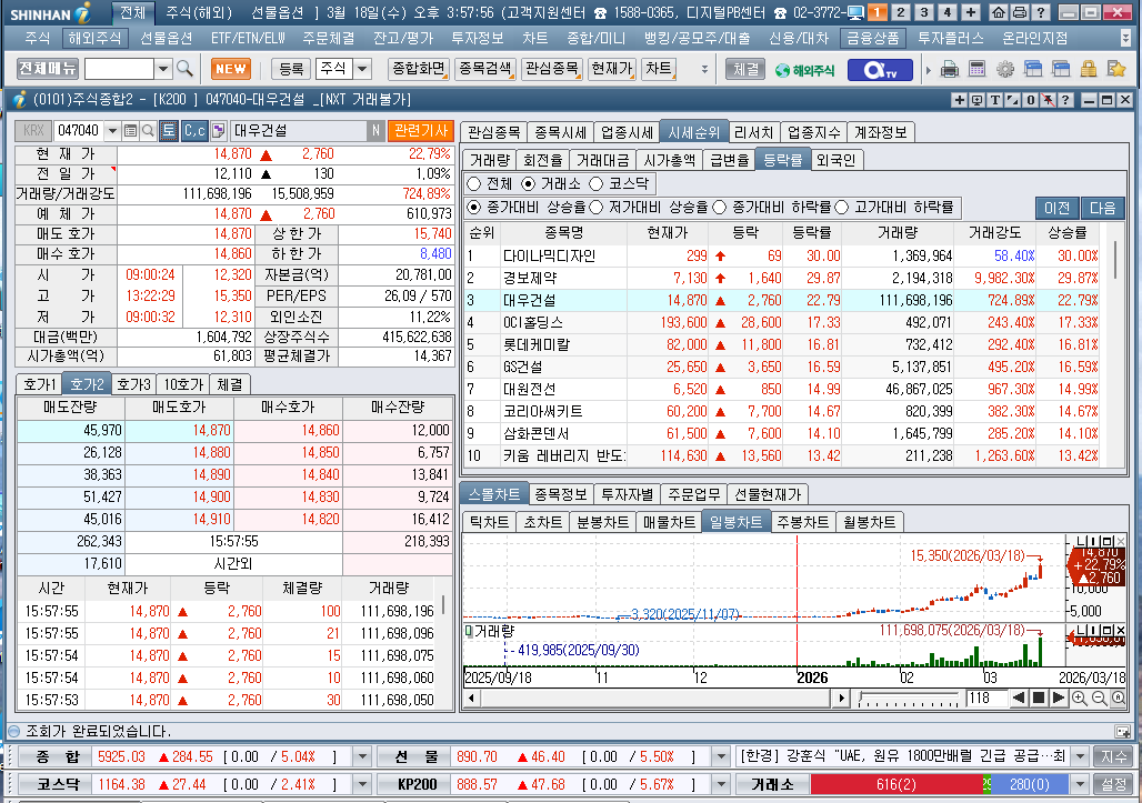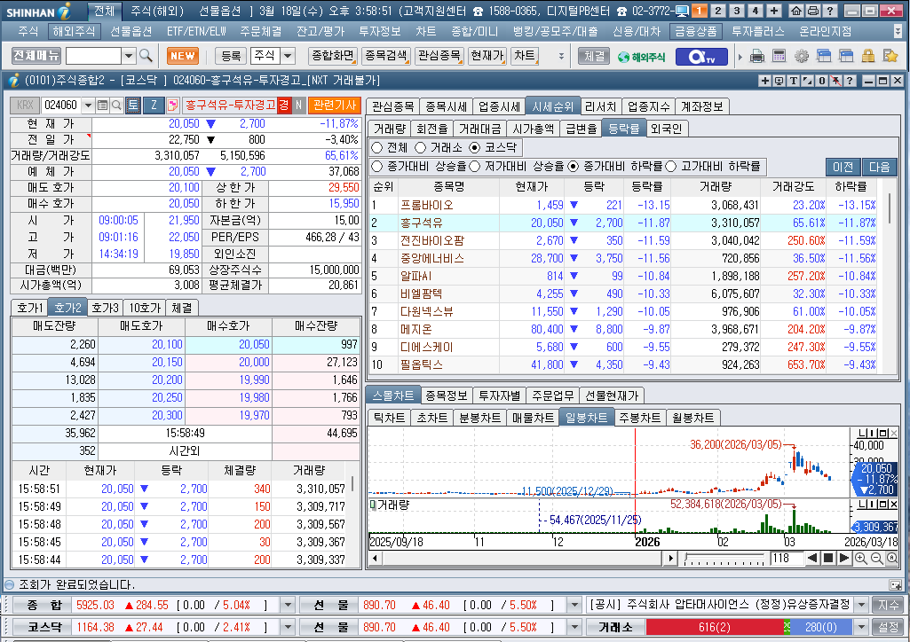 2026년 3월 18일 수요일 증시현황
