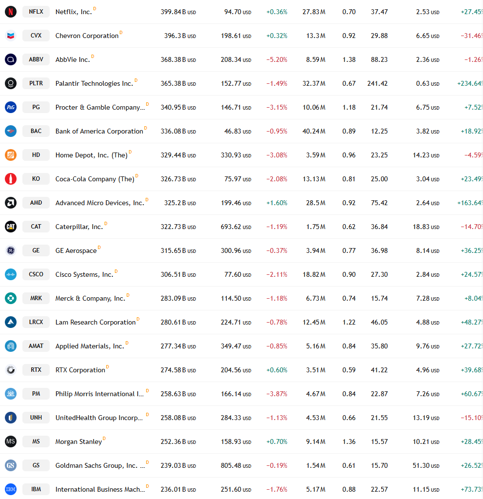 미국증시 시가총액 순위입니다.