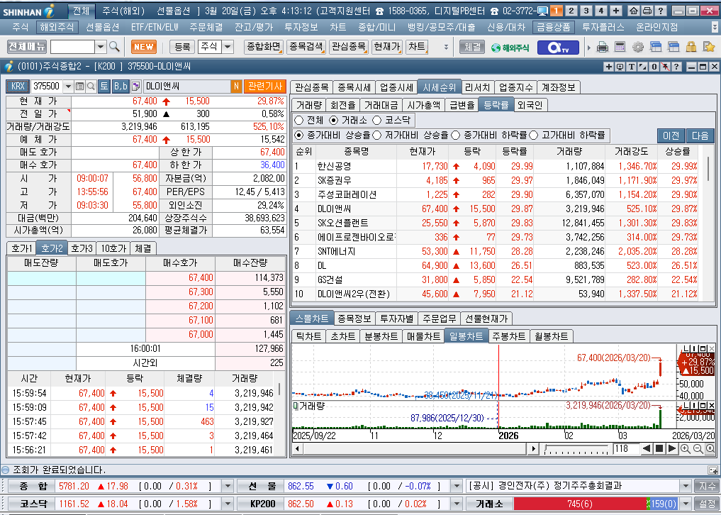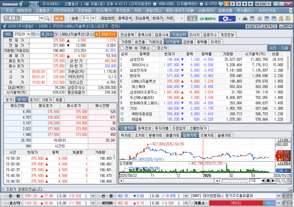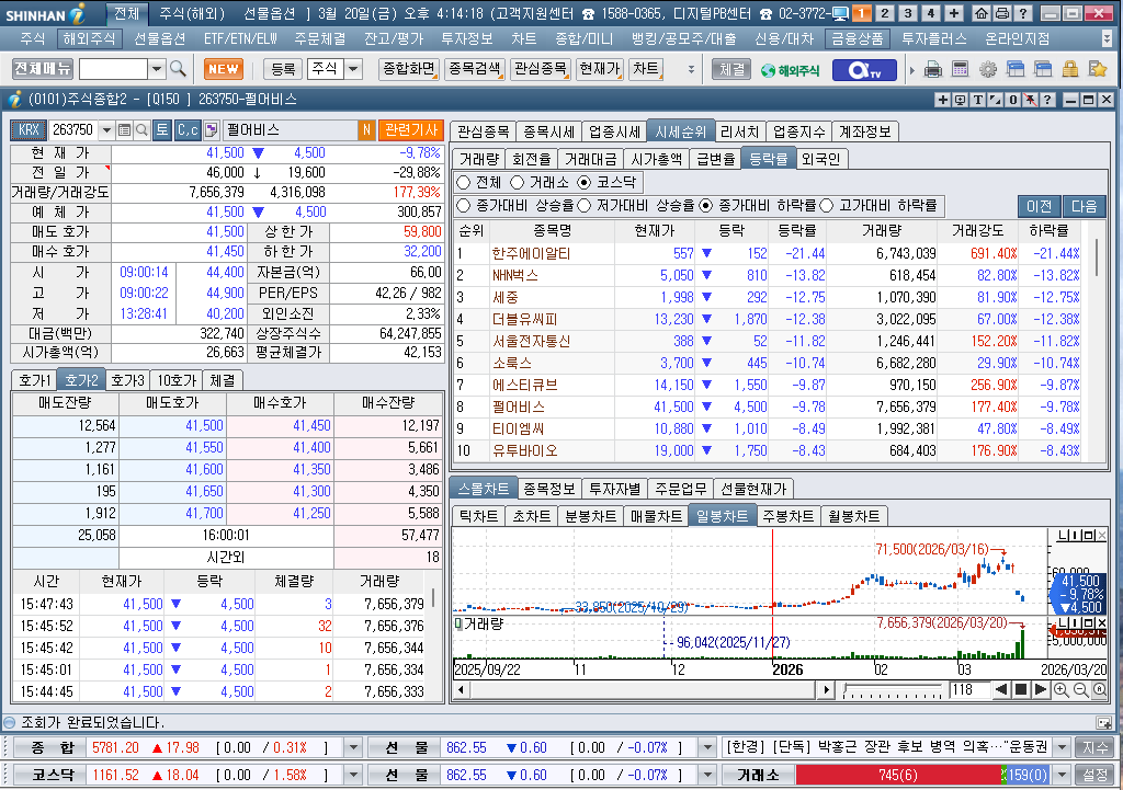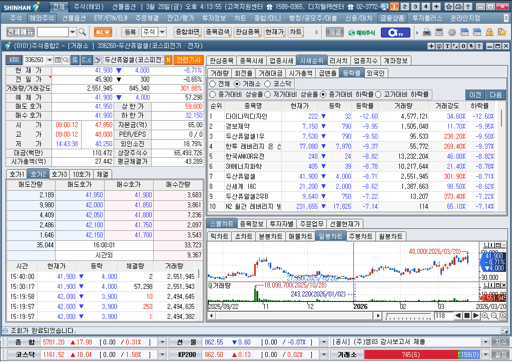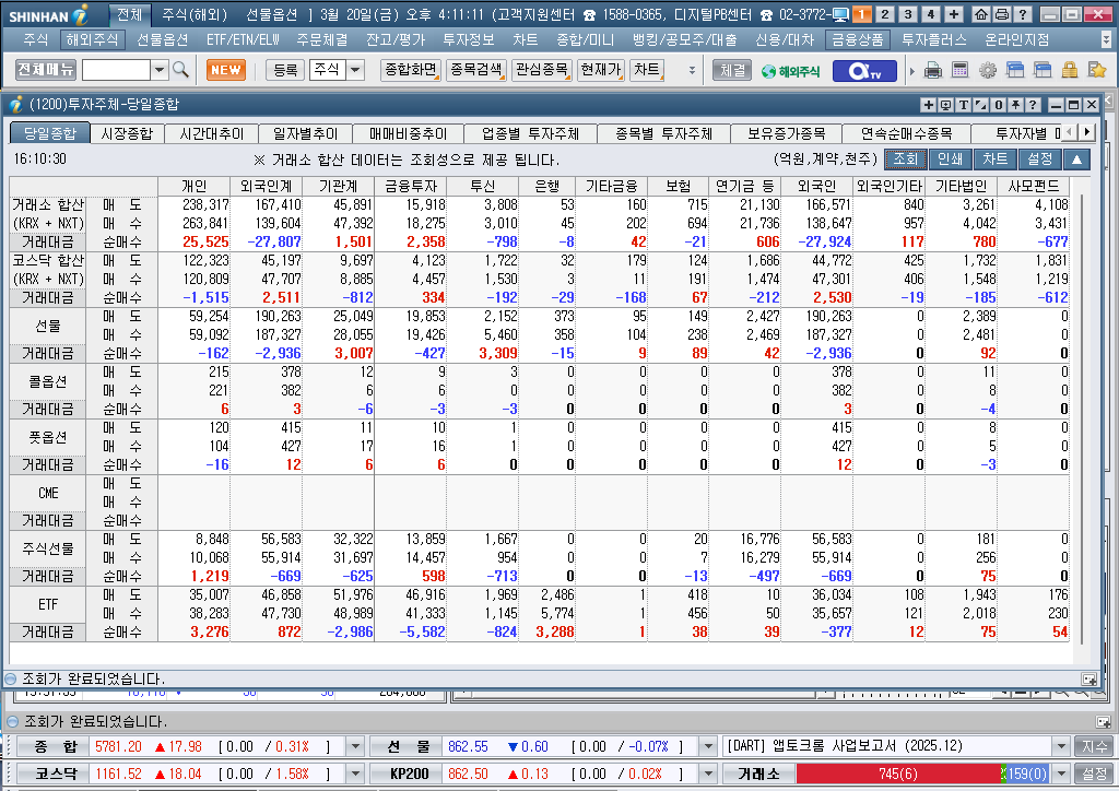 2026년 3월 20일 금요일 증시현황