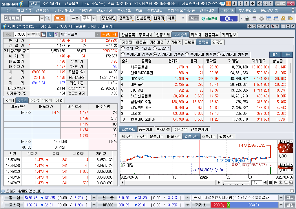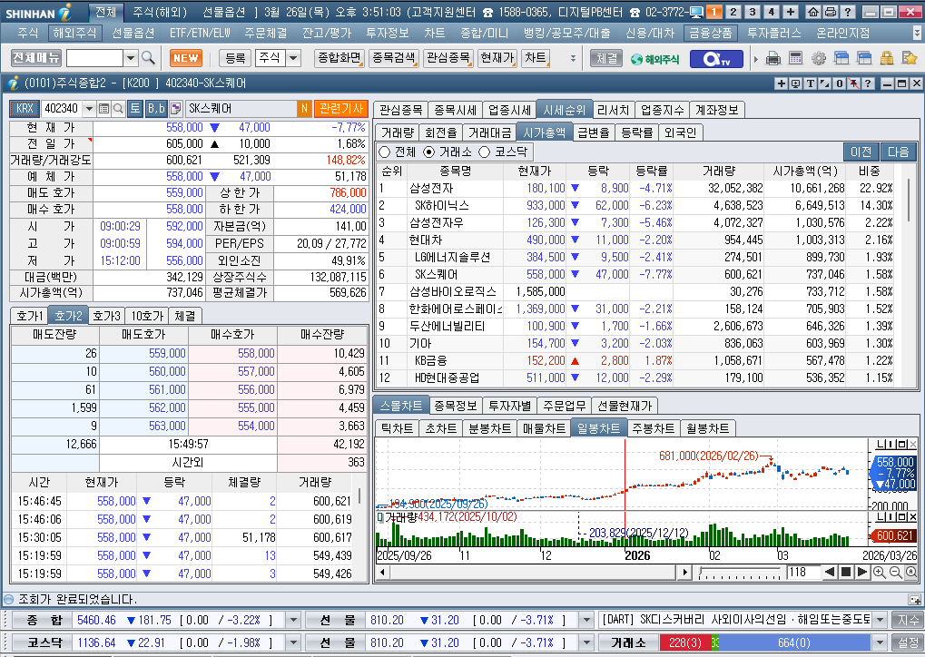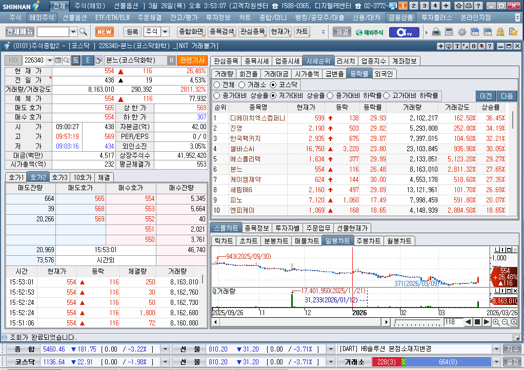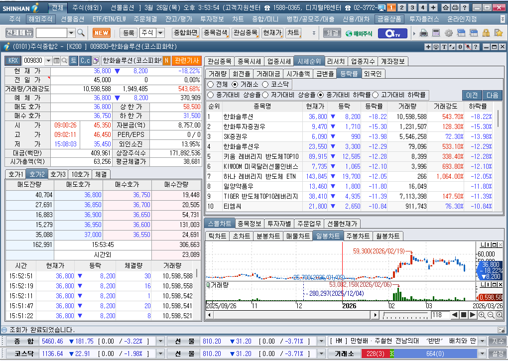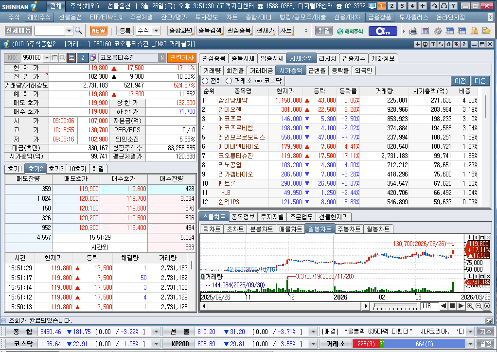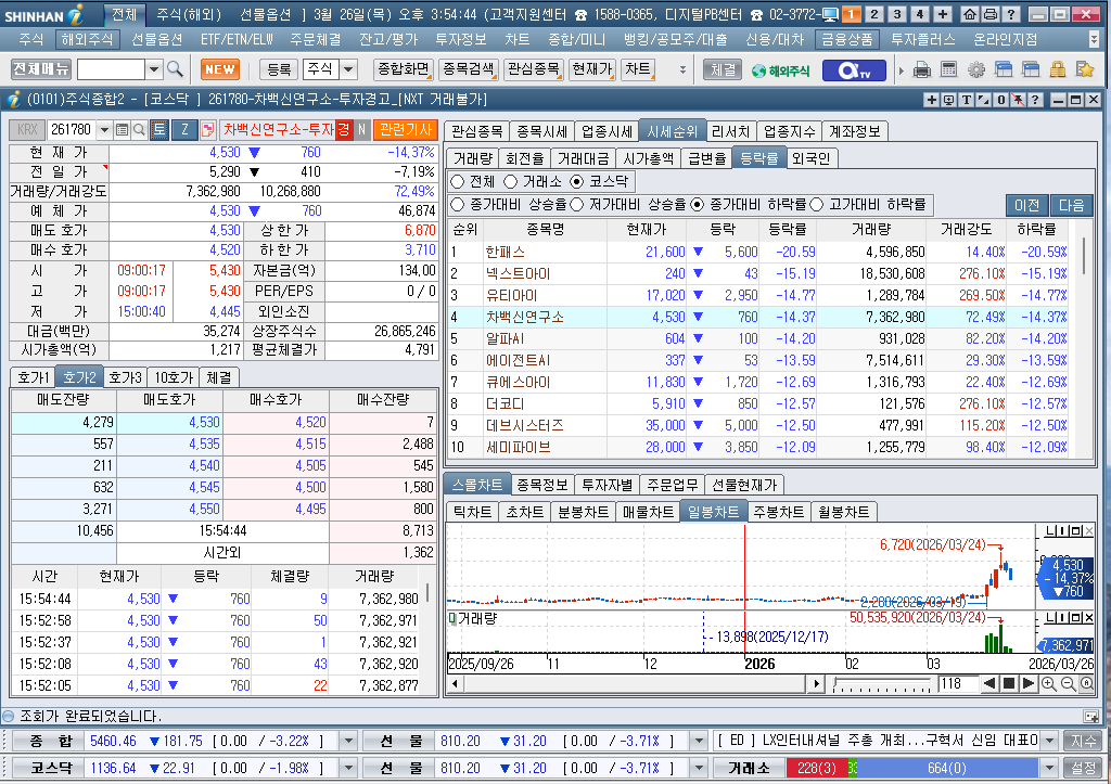 2026년 3월 26일 목요일 증시현황