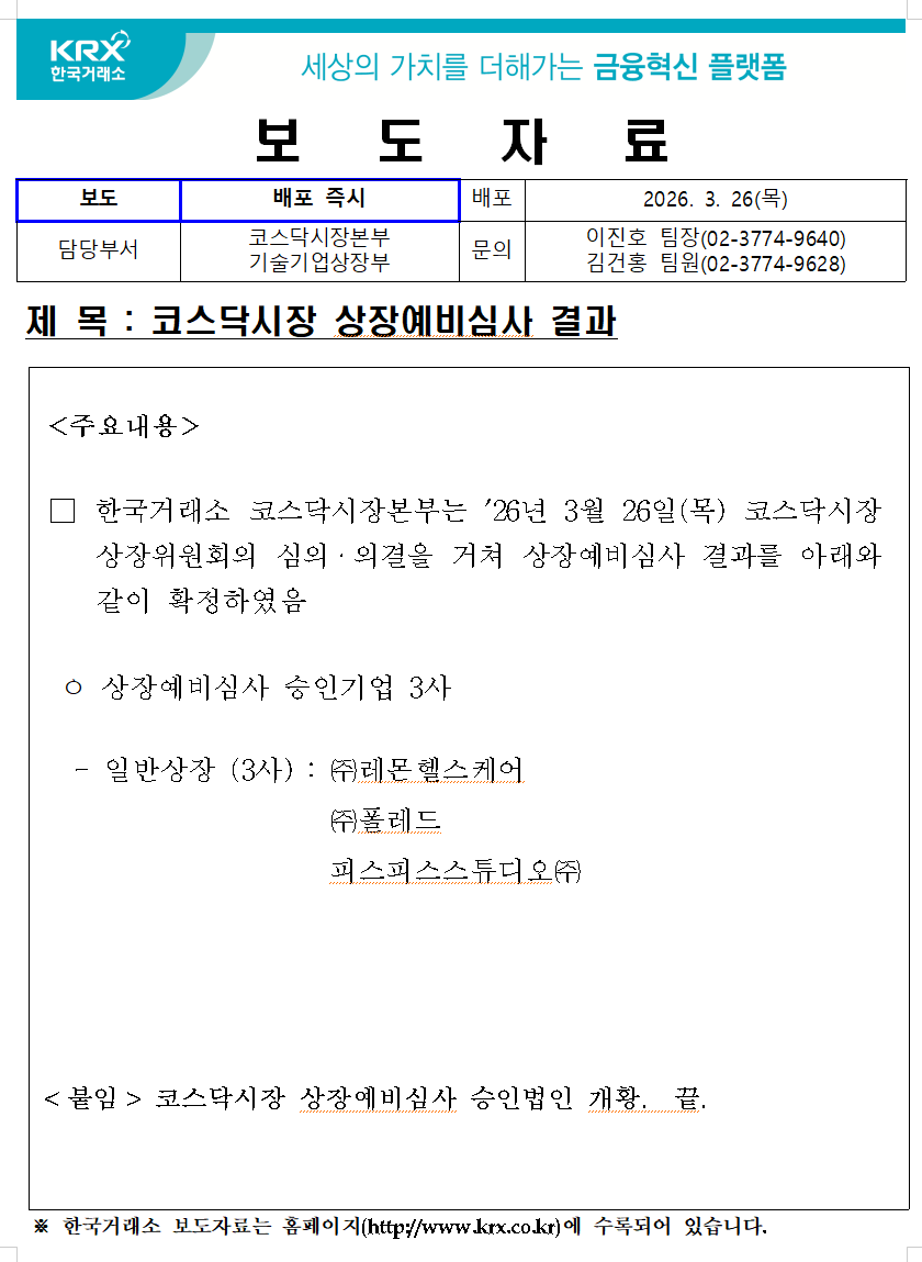 | 엔에이치스팩33호(0130H0), 코스닥시장 신규상장(2026년 3월 27일) (0) | 2026.03.26 |