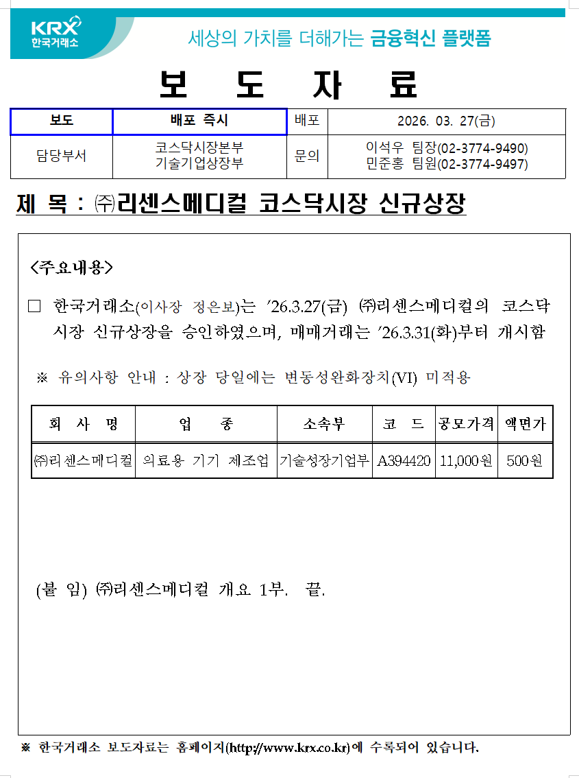 한국거래소 등록일 2026-03-27