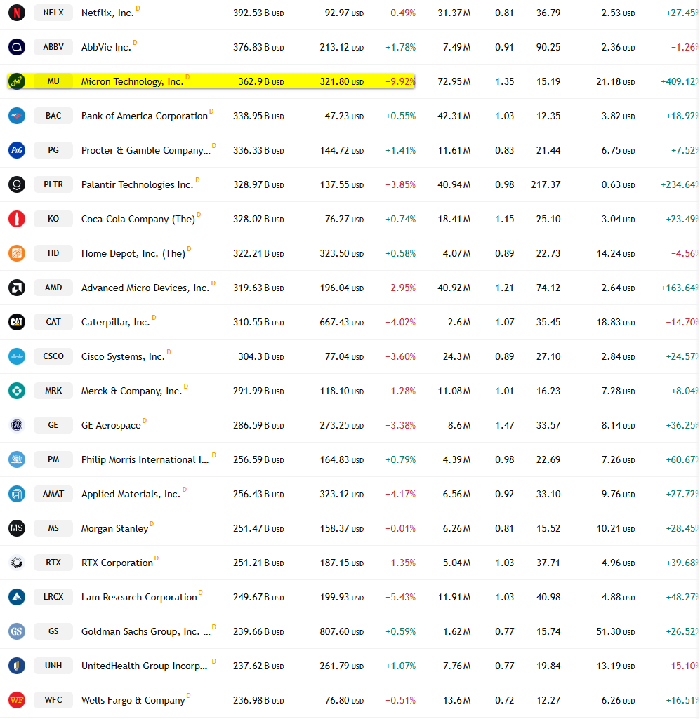 미국증시 시가총액 순위입니다.
