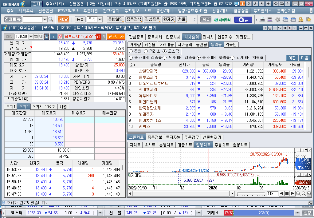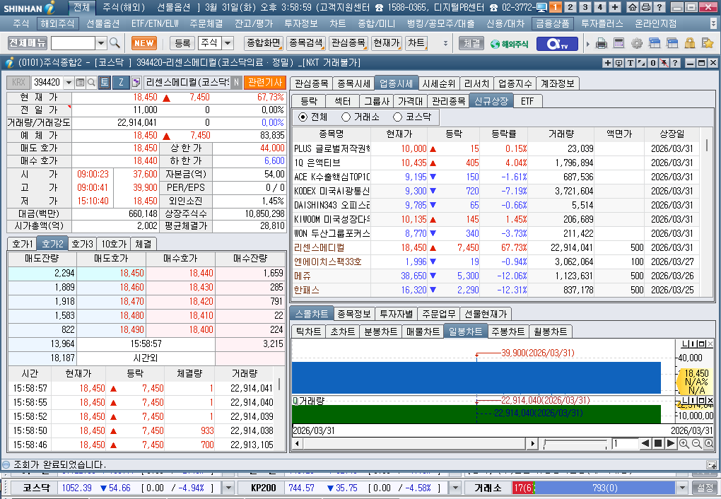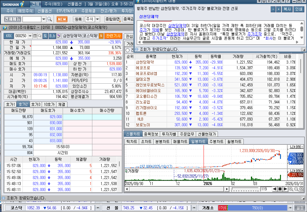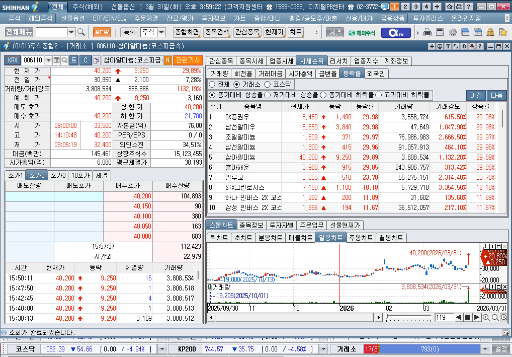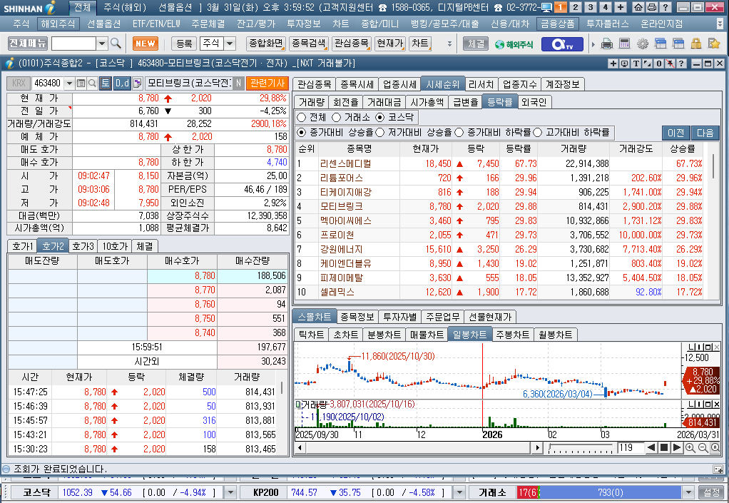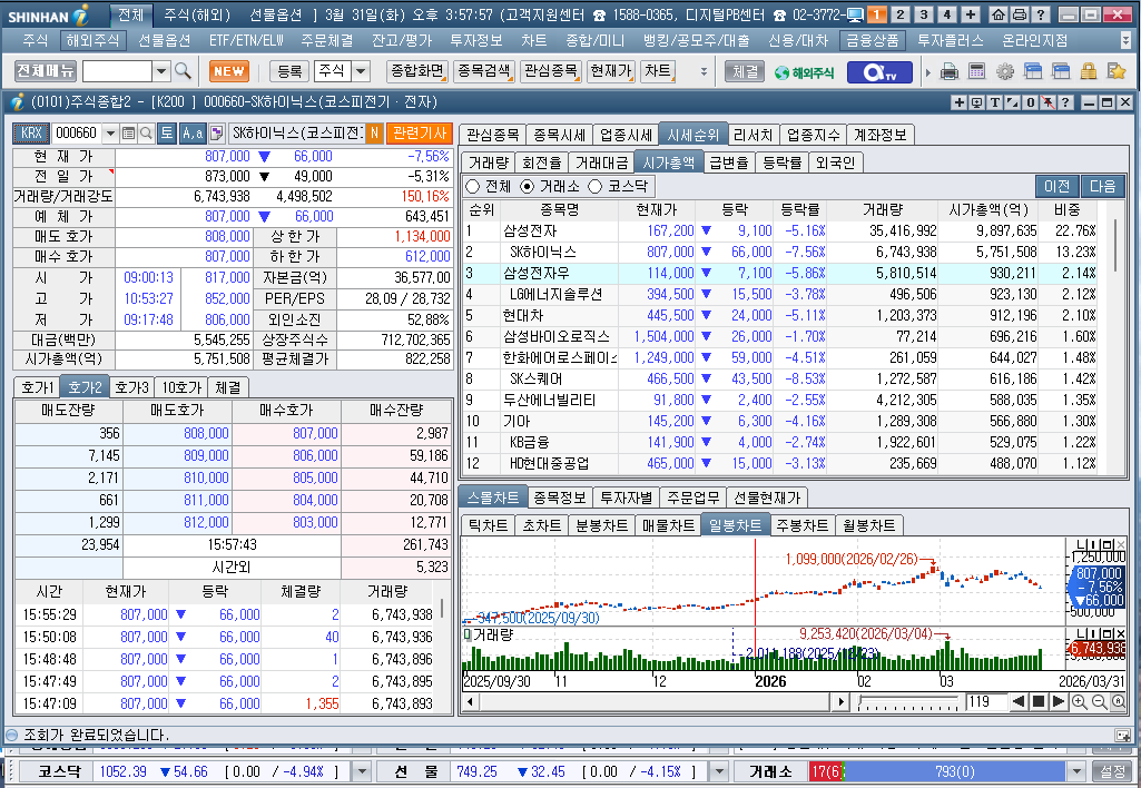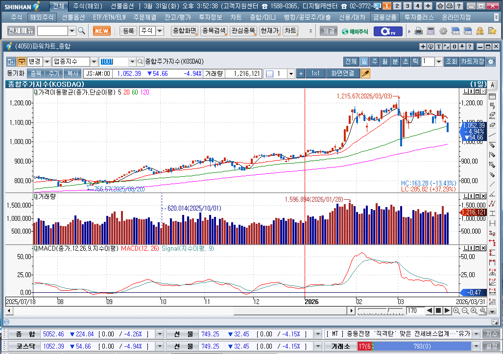 2026년 3월 31일 화요일 증시현황