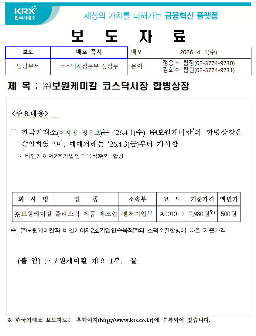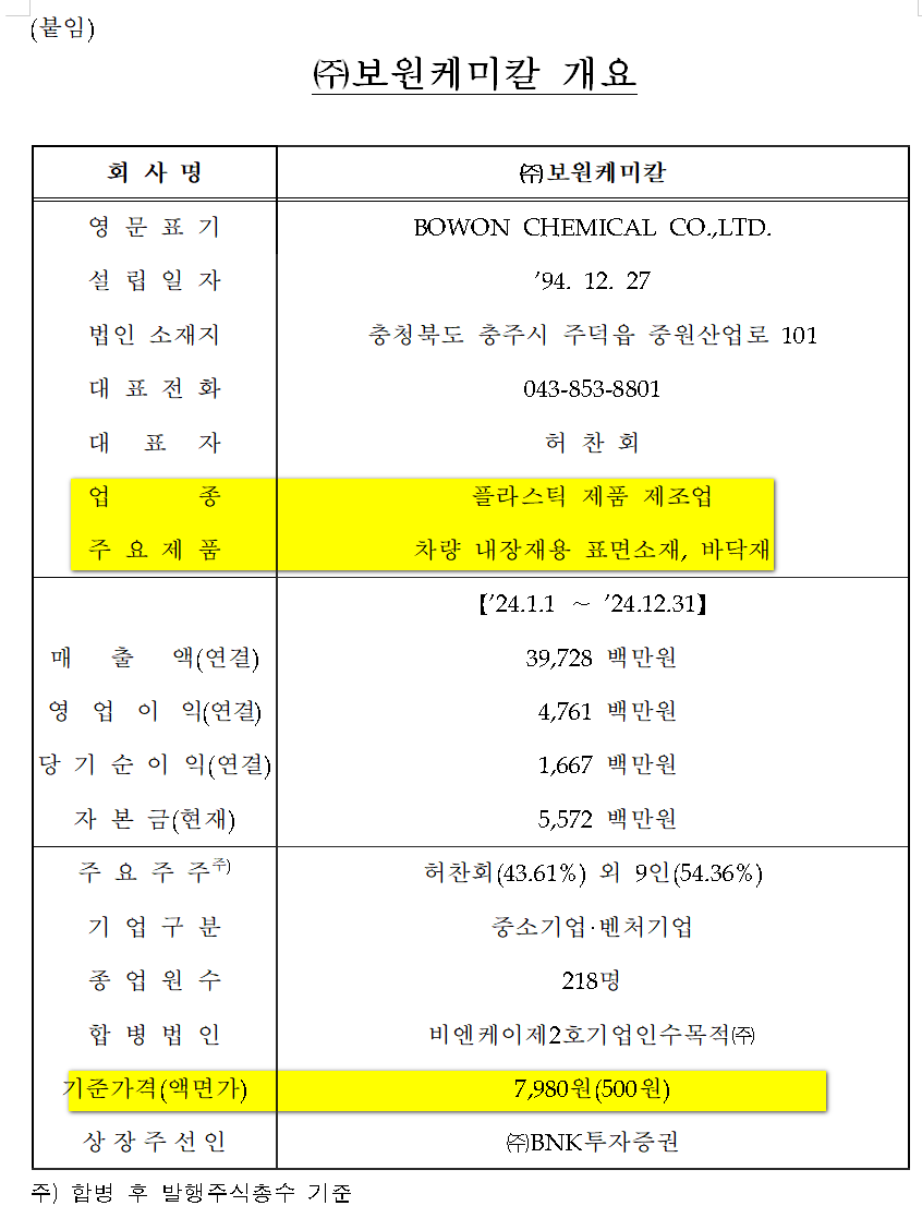 보원케미칼(0010F0.비엔케이2호스팩합병),
