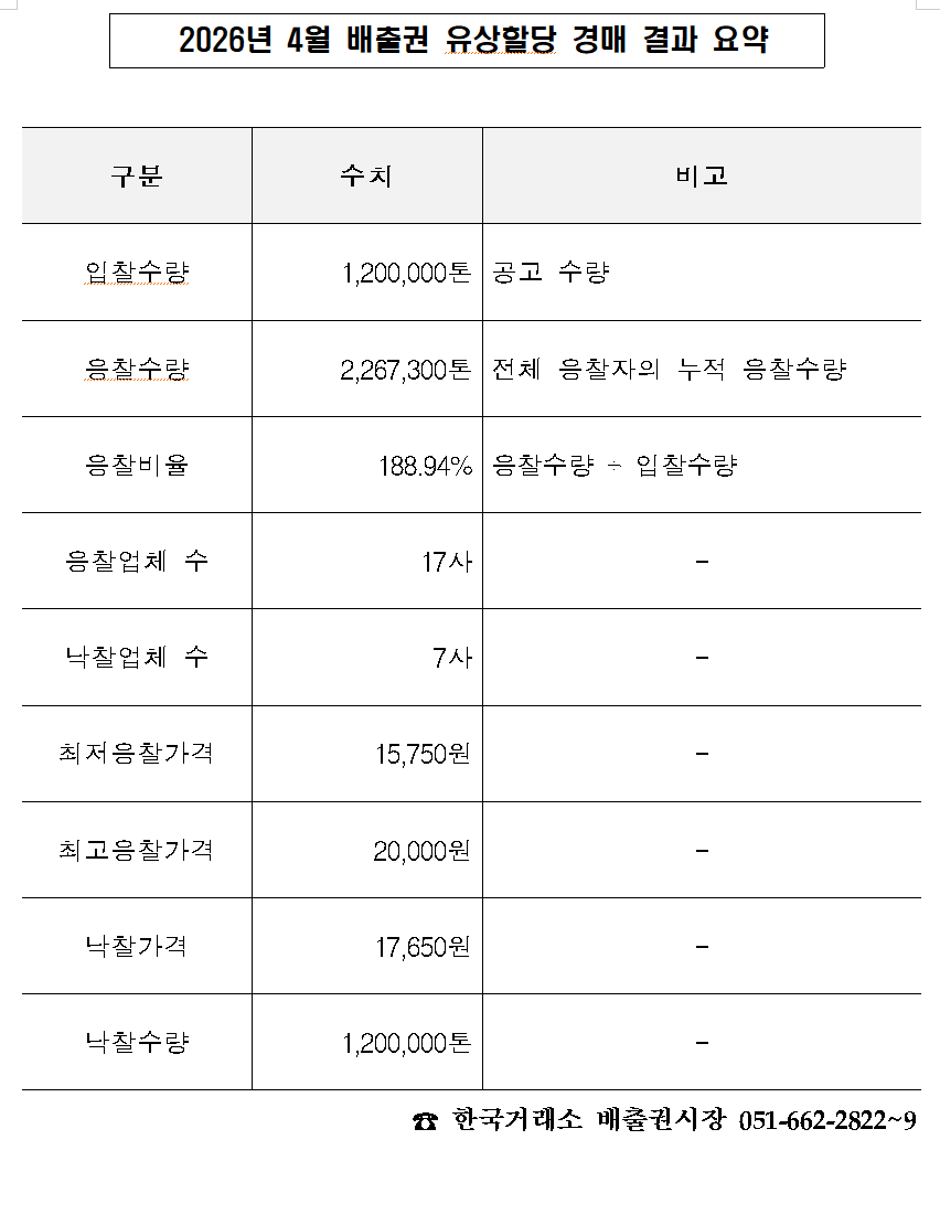 2026년 4월 배출권 유상할당 경매 결과