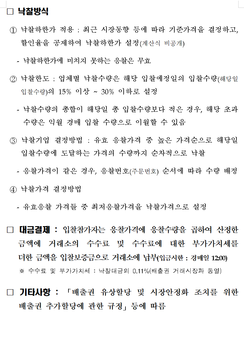 □ 입찰방식 : 한국거래소 배출권 거래시장