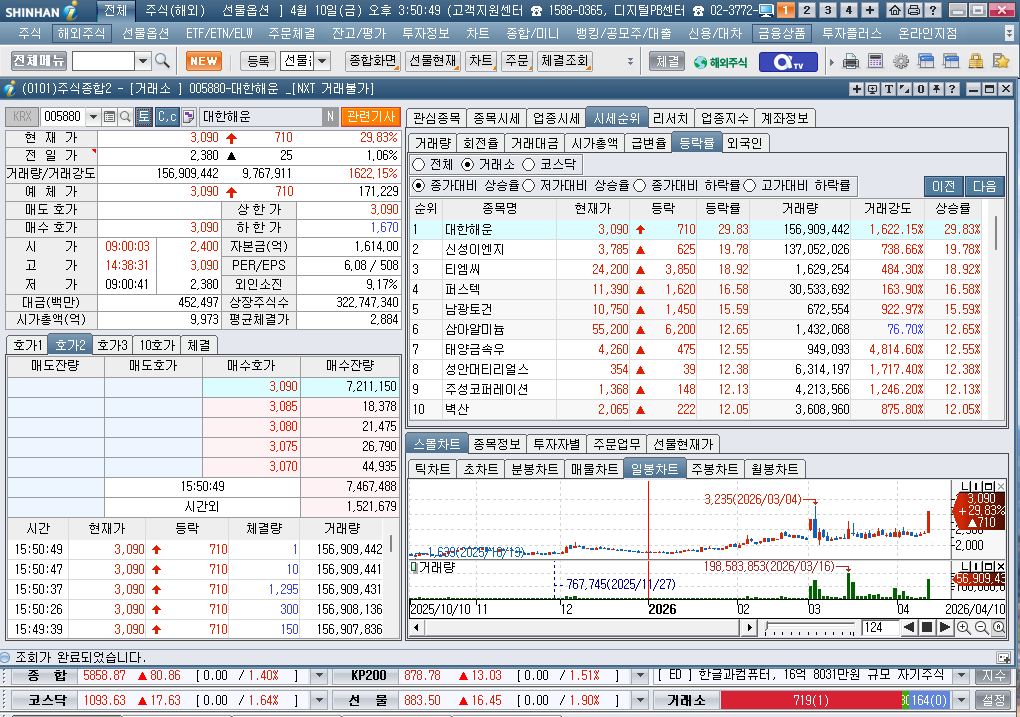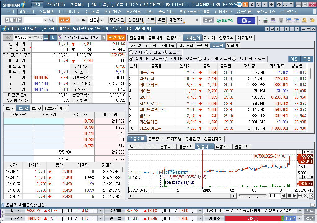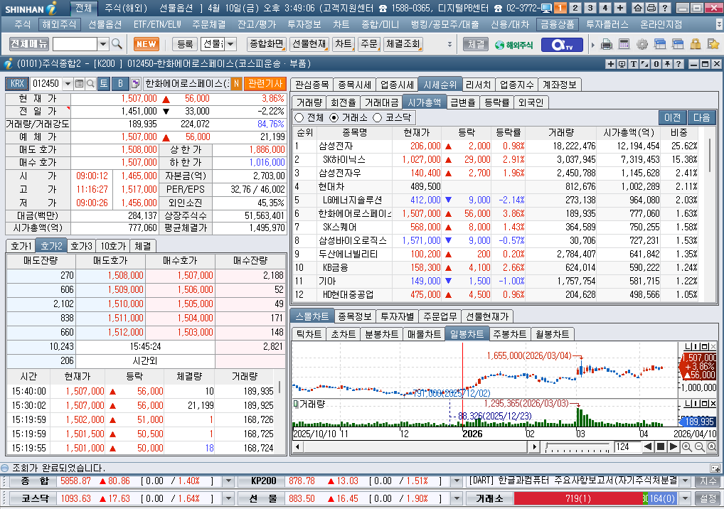 2026년 4월 10일 금요일 증시현황