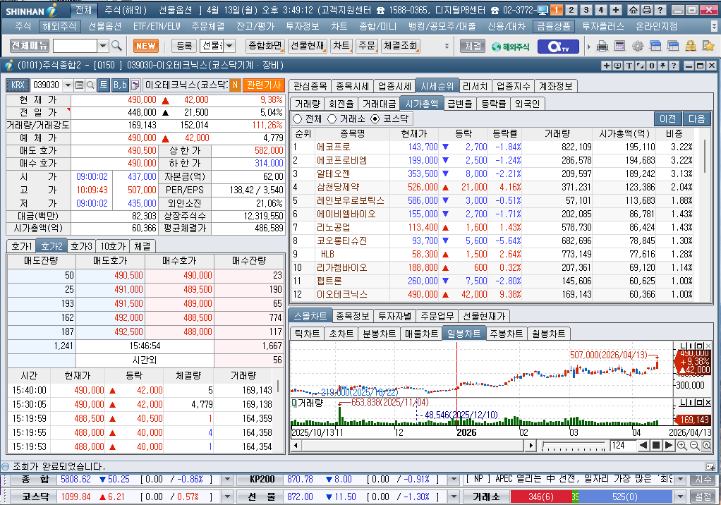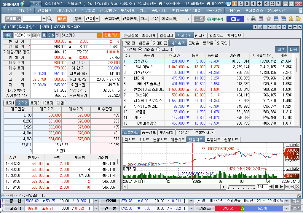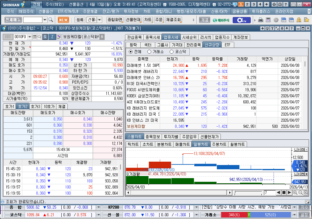 2026년 4월 13일 월요일 증시현황