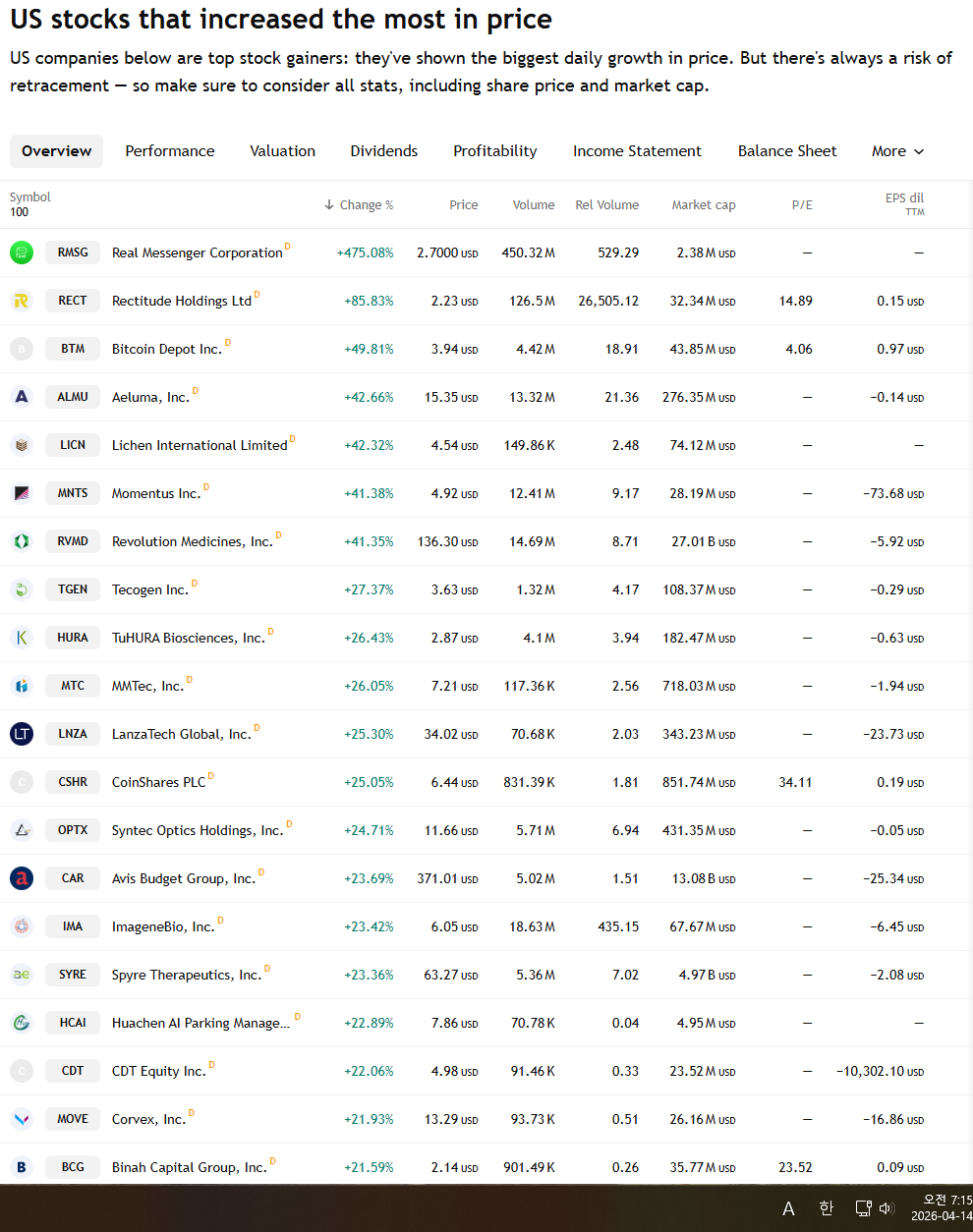 | 2026년 4월 14일 화요일 증시현황 (0) | 2026.04.14 |