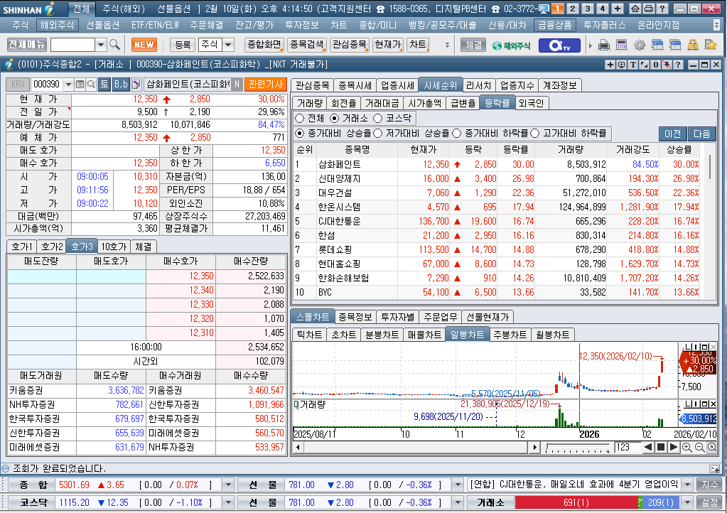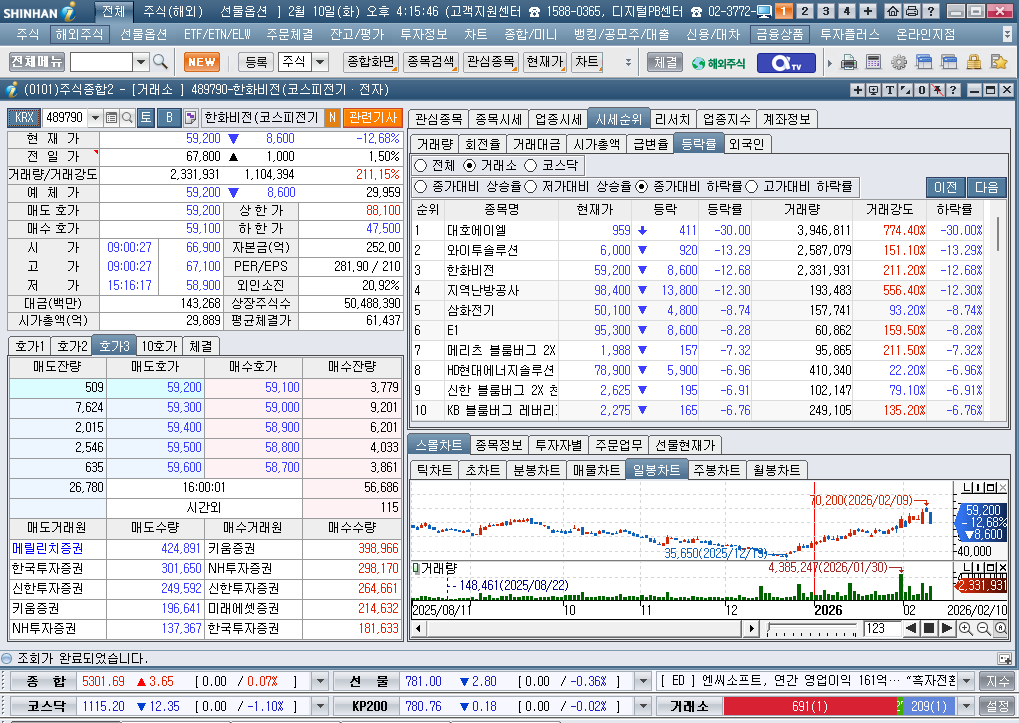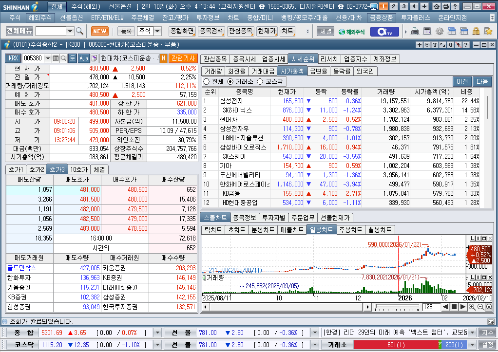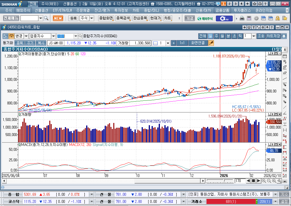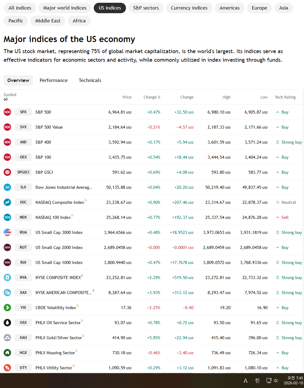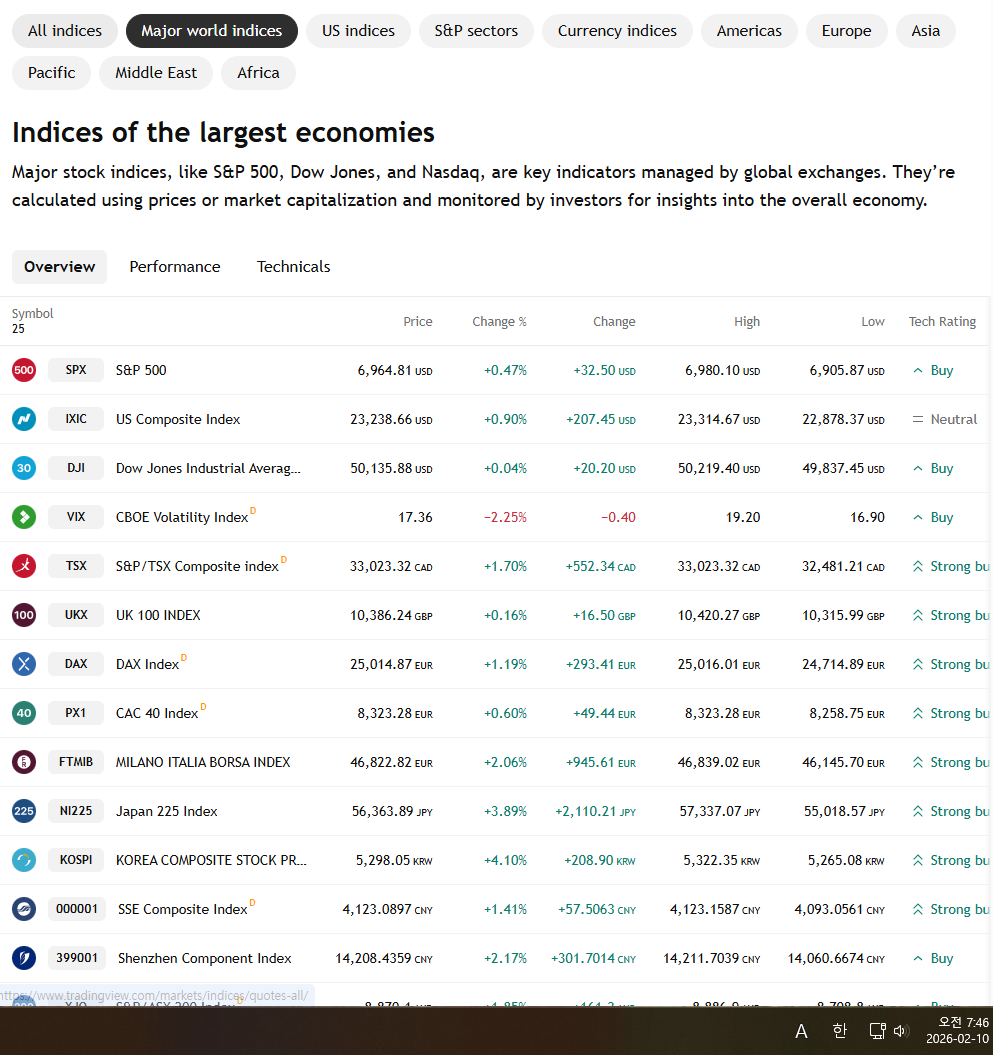2026년 2월 10일 화요일 증시현황