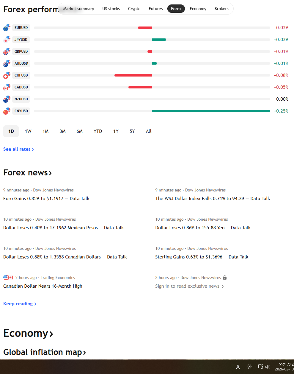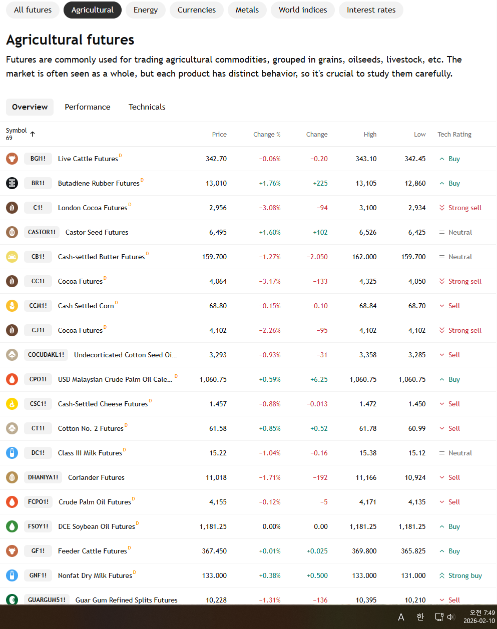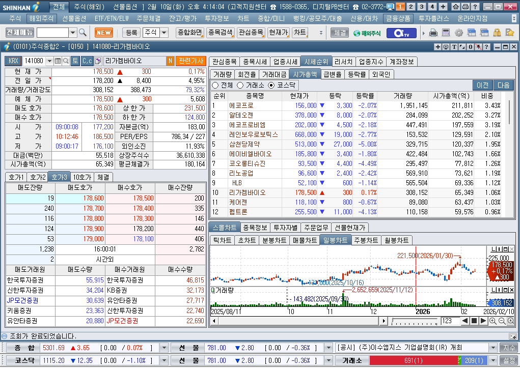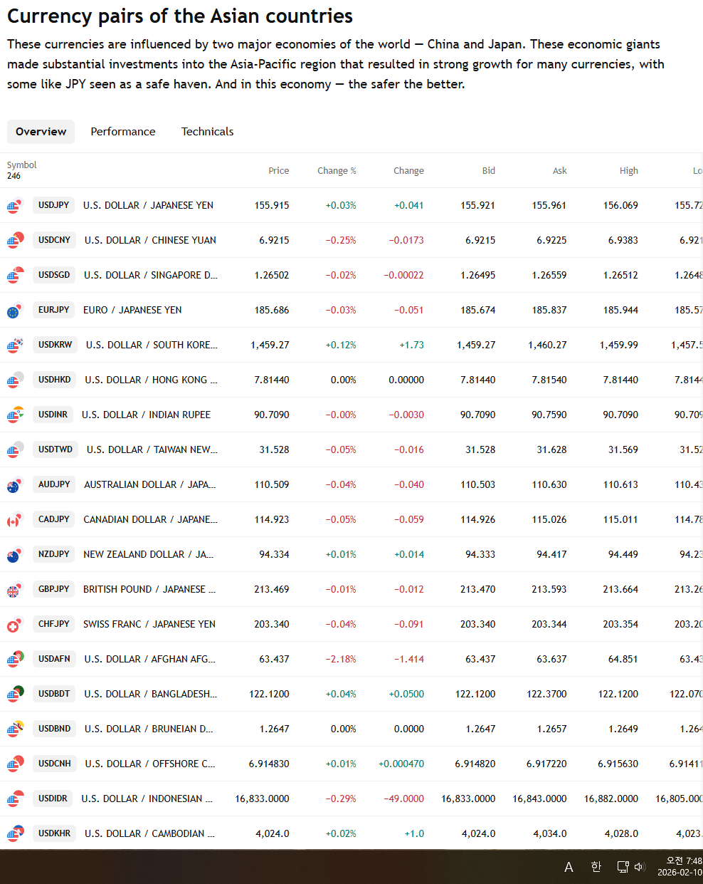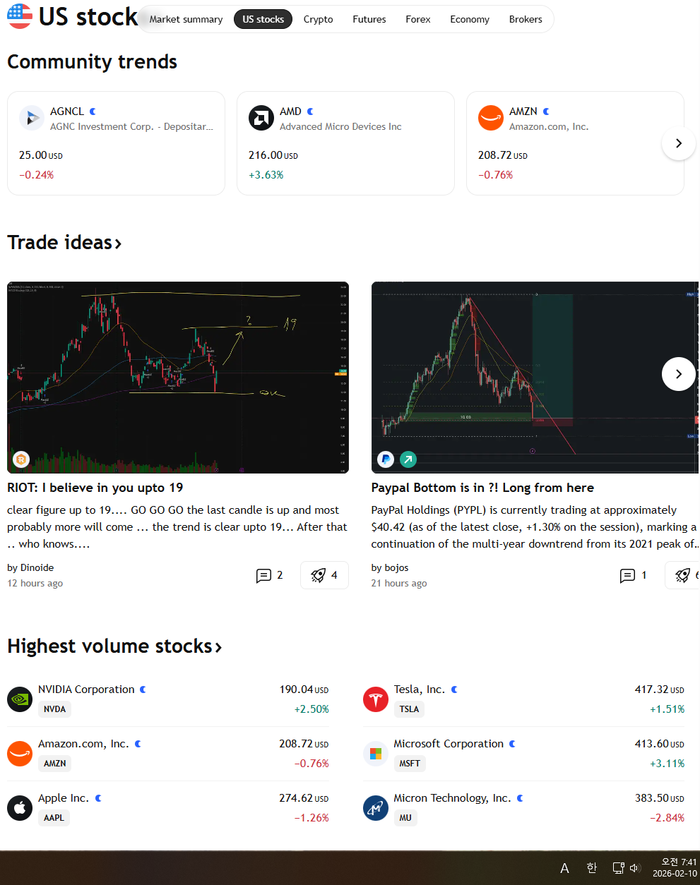 2026년 2월 10일 화요일 증시현황