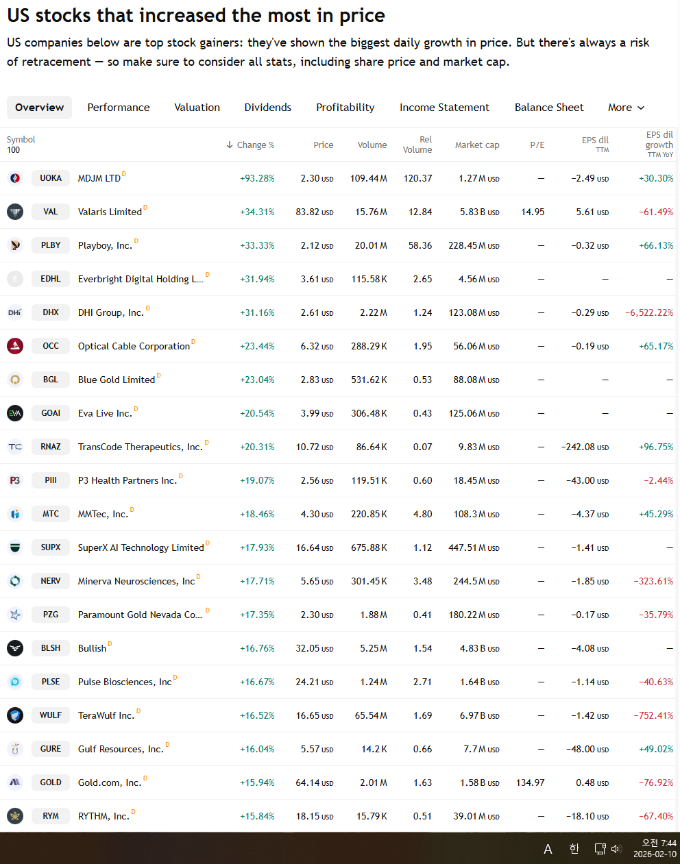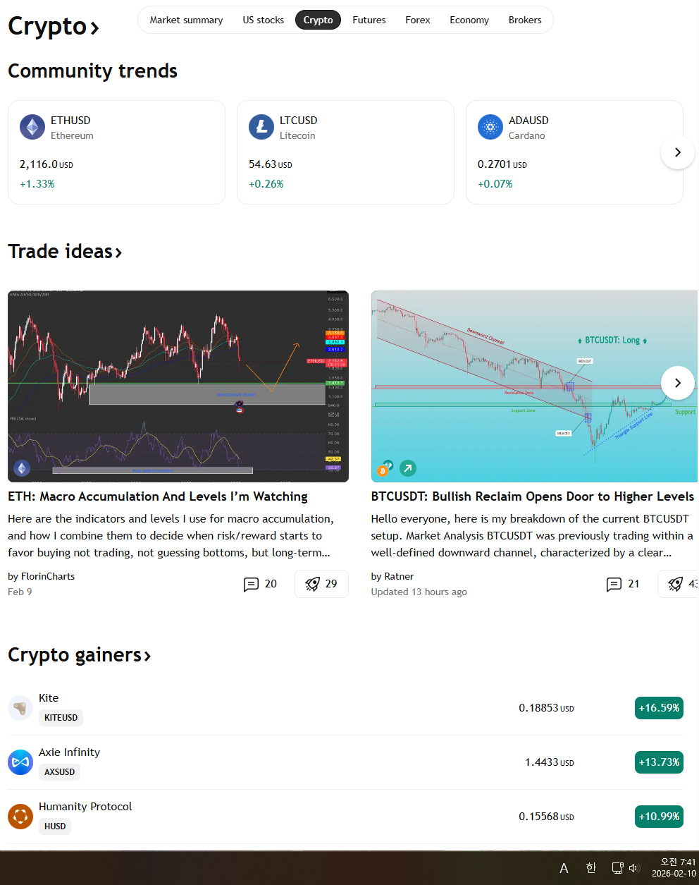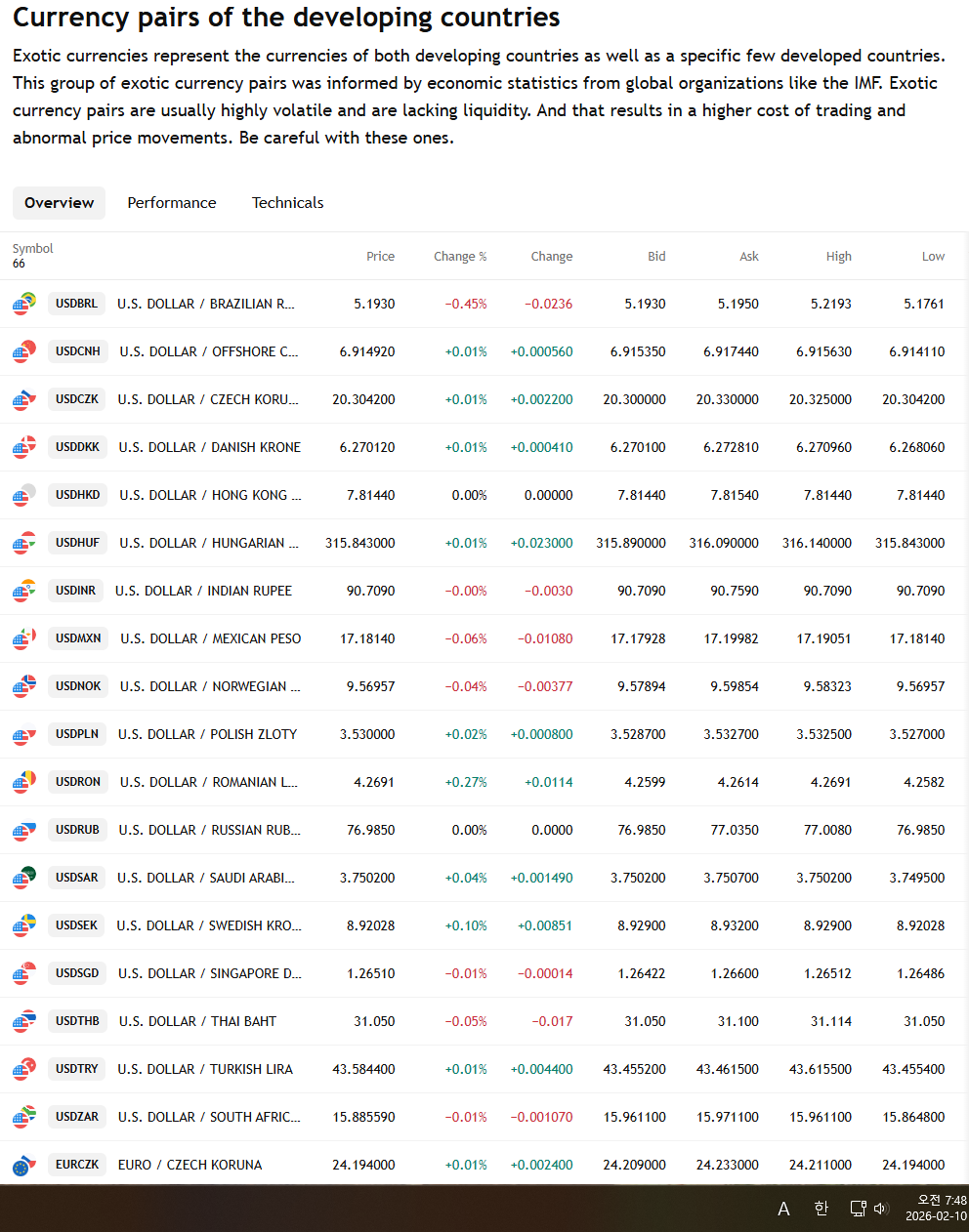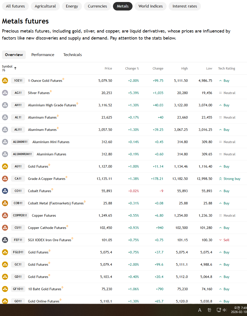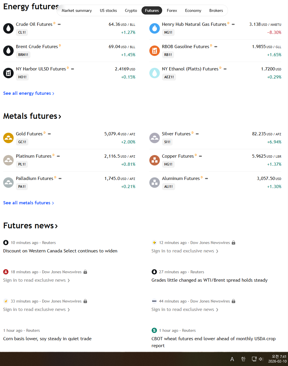 2026년 2월 10일 화요일 증시현황